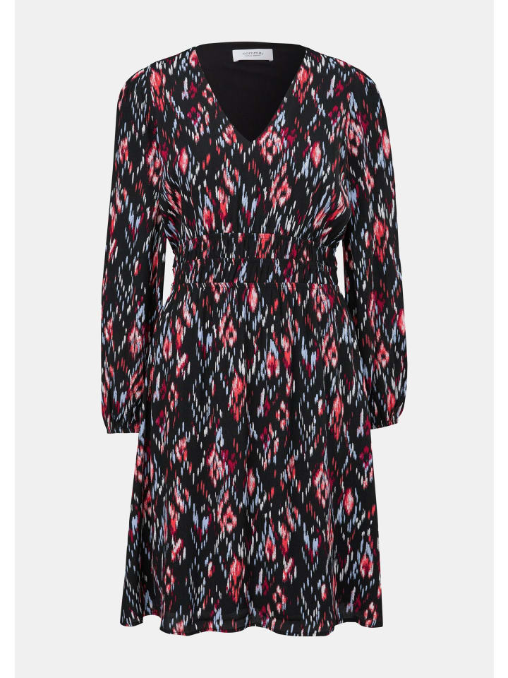 Вневременная элегантность и женственность: приталенное платье из крепа. Струящаяся вискозная ткань подчеркивает фигуру и создает стильный образ. V-образный вырез и длинные рукава создают ансамбль, который легко сочетается как с повседневным, так и с вечерним нарядом. Пусть это изделие вдохновит вас.