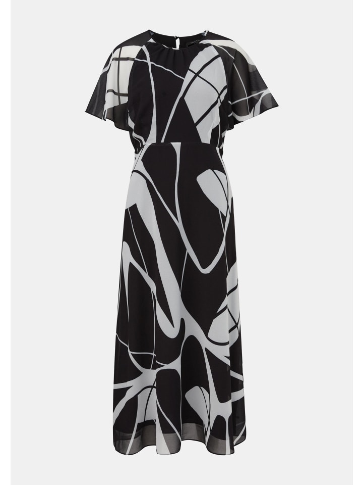 Воздушное и элегантное: это длинное шифоновое платье подчеркивает фигуру струящейся драпировкой и женственным силуэтом. Круглый вырез и короткие рукава создают непринужденный образ. Это платье на легкой подкладке с застежкой-молнией идеально подходит для торжественных случаев - наденьте его с сандалиями и блейзером, чтобы создать гламурный образ.