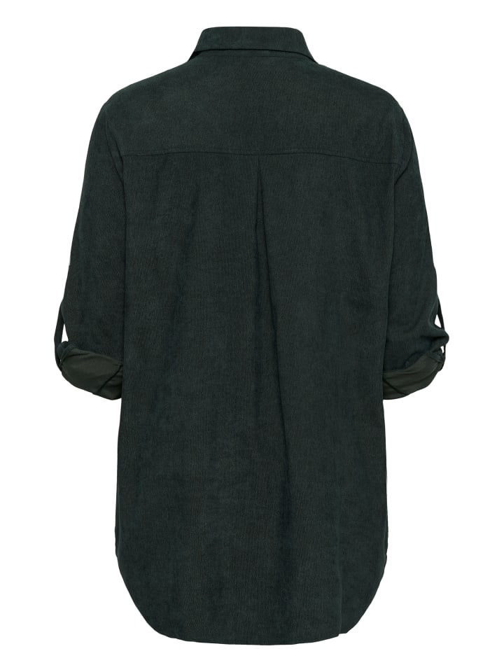 Женская рубашка свободного кроя с классическим воротником, застежкой на пуговицы по всей длине и длинными рукавами, которые можно подвернуть. Удобная и функциональная модель на каждый день с практичным нагрудным карманом.