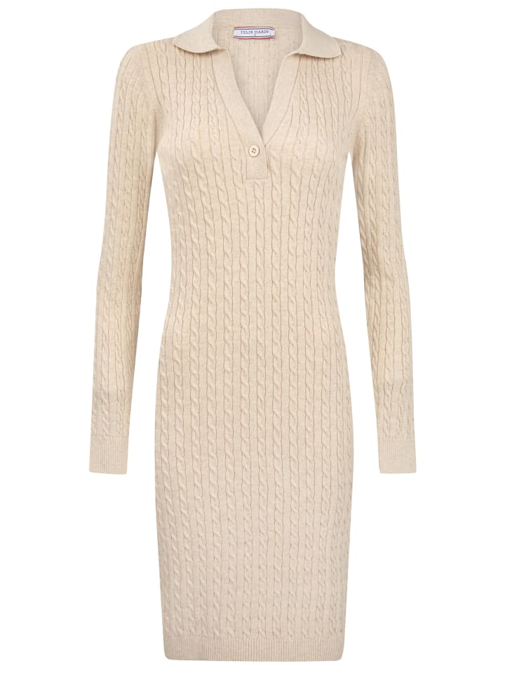 Женское платье Felix Hardy с длинными рукавами из тонкого трикотажа с косичками впечатляет изящными деталями и легкой, дышащей структурой трикотажа. Мягкий и комфортный материал отлично отводит влагу и приятен на ощупь. Тонкий узор с косичками придает изделию изысканную текстуру, а длинные рукава и приталенный крой создают изящную драпировку. Это универсальное платье идеально подходит для переменчивой погоды, сочетая в себе стиль и комфорт, и подходит как для повседневных, так и для полуофициальных мероприятий. Дизайн представляет собой изысканное сочетание традиционных техник вязания и современного кроя.