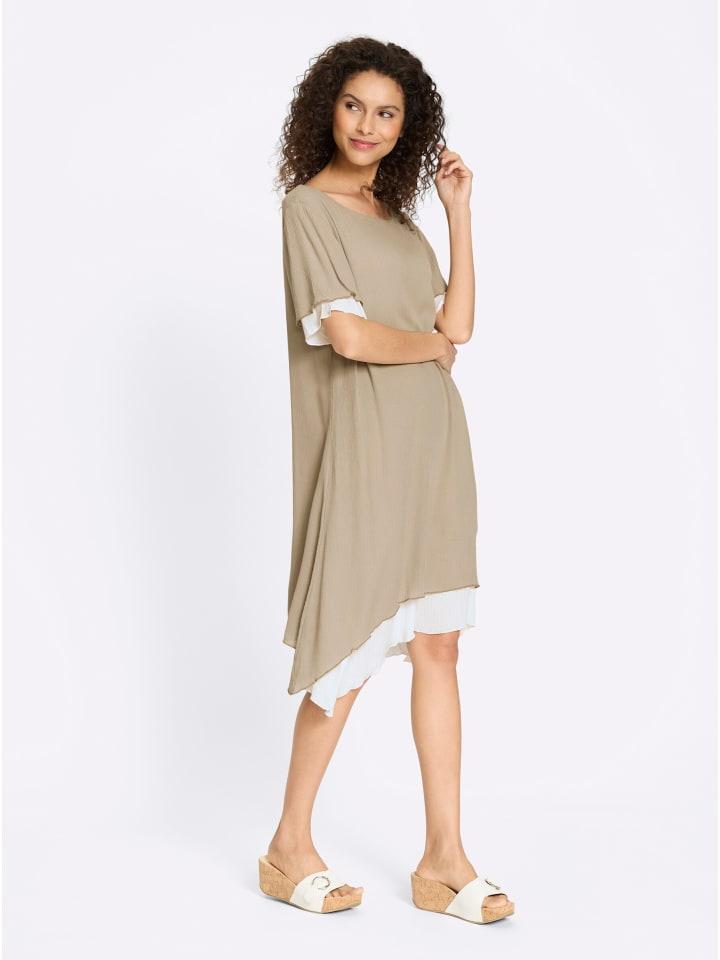 Платье. Невероятно воздушное и простое, из легкой двухслойной жатой ткани. Круглый вырез, короткие рукава и заостренный подол. Вискоза качества ECOVERO от Lenzing.