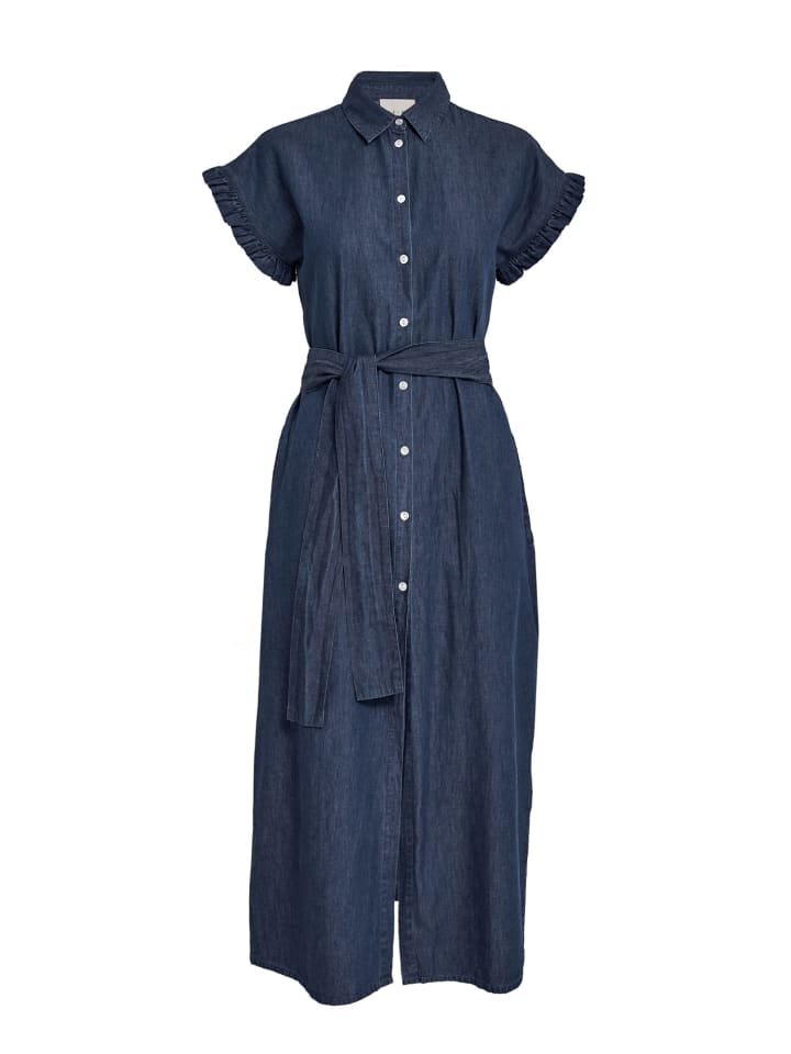 Станьте стильным и непринужденным с платьем миди DSDarlene Frill от Desires. Изготовленное из роскошного хлопка, это платье имеет структурированный, но мягкий силуэт, изящно драпирующий тело. Высокий вырез горловины излучает вневременную элегантность и идеально дополняется очаровательными рукавами с рюшами, которые добавляют игривую изысканность. Застежка на пуговицы легко подчеркивает классический стиль, а универсальный пояс с завязкой подчеркивает талию, создавая изящную посадку. Дополните его любимыми ботильонами и эффектным колье, чтобы создать шикарный ансамбль, который легко перейдет от дневных прогулок до вечерних свиданий.