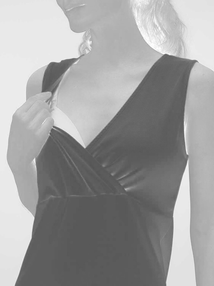 - Детали: Вырез по животу, боковые разрезы, область для кормления под эффектом запаха