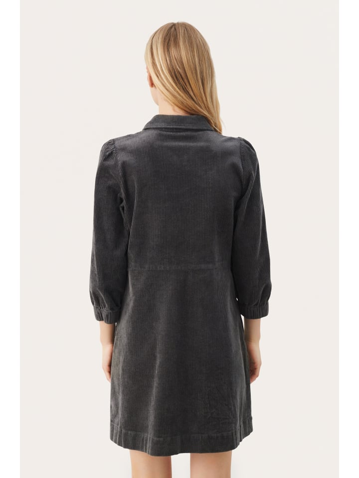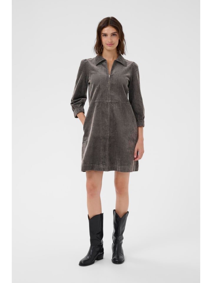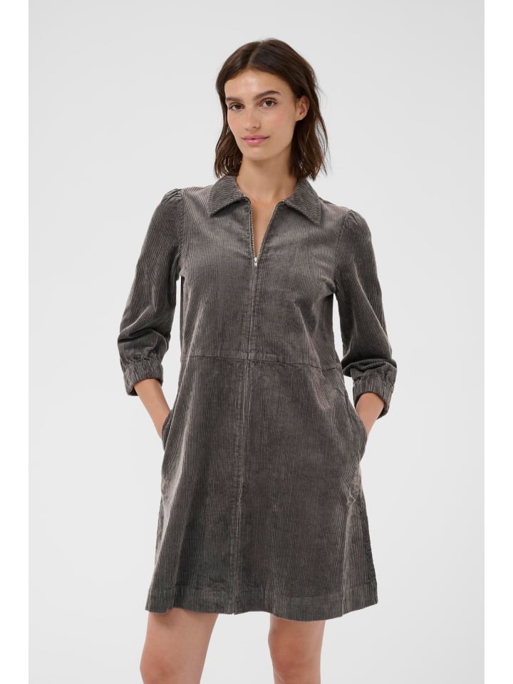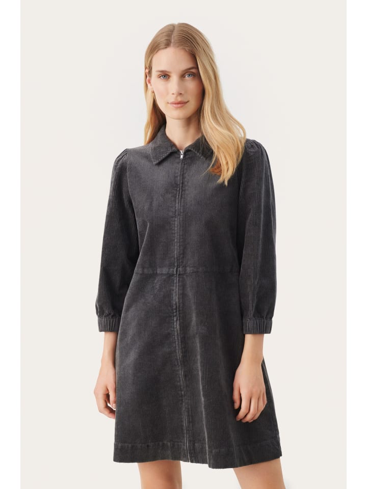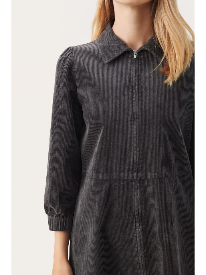 Это вельветовое платье классического прямого кроя с заостренным воротником и рукавами три четверти с эластичными манжетами. Молния спереди обеспечивает современный вид и разнообразные возможности для создания стильного образа, обеспечивая при этом комфорт.