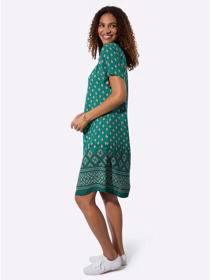 Фантастический принт, облегающий силуэт и невероятный комфорт: это платье с принтом и каймой по низу - все, что нужно любимому наряду! Просто наденьте его и чувствуйте себя комфортно! Круглый вырез горловины с присборкой и короткие рукава реглан. Вискоза ECOVERO от Lenzing.