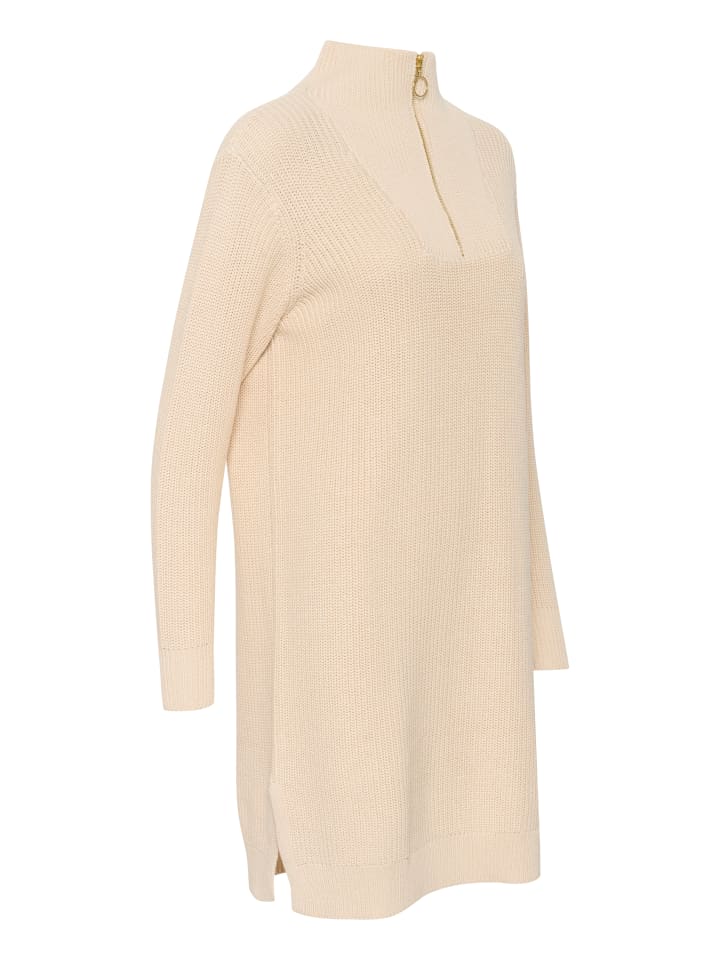 Это трикотажное платье свободного кроя с высоким воротником на молнии и длинными рукавами. Удобная посадка и разнообразные варианты для создания образа.