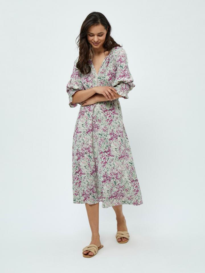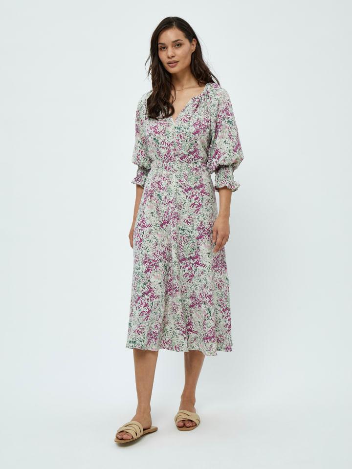 Платье миди с принтом, рукавами 3/4 и сборками. Платье изготовлено из 100% полиэстера.