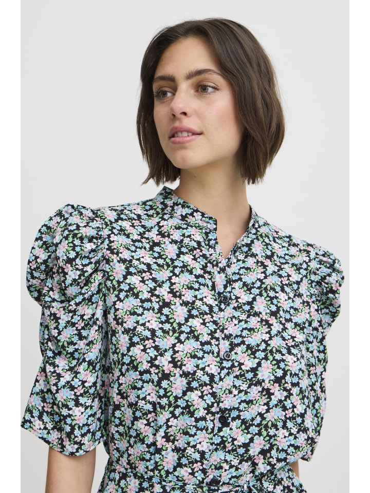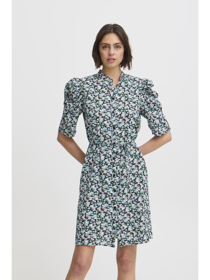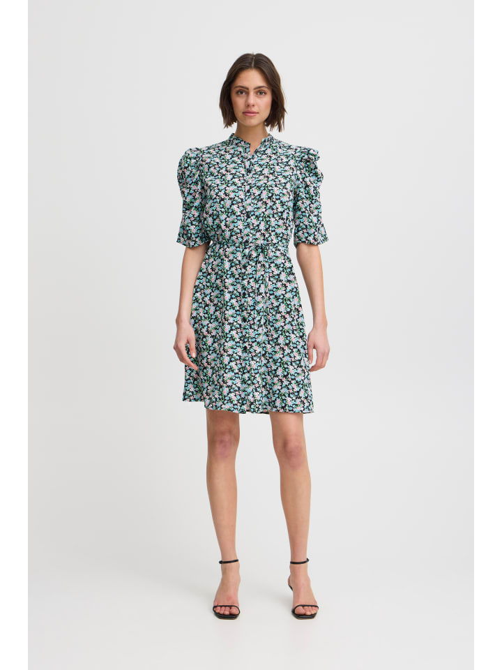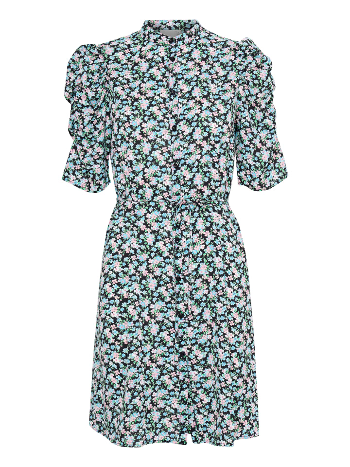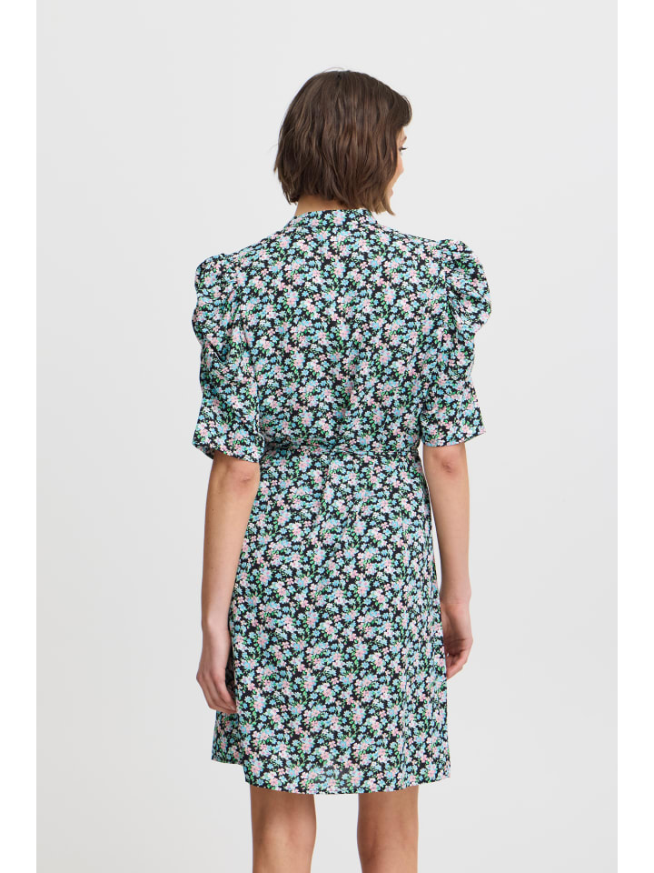 Платье IXNINA, классический крой, цвет Total Eclipse, с синими цветами. ICHI