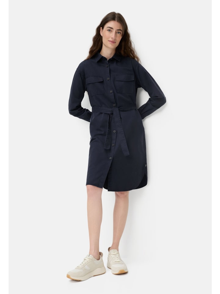 Платье-рубашка, которое одновременно подходит и для повседневной носки, и для путешествий. Благодаря мягкой смеси хлопка и лиоцелла ткань приятно легкая на ощупь. Завязывающийся пояс добавляет четкости, а нагрудные, боковые и карманы с клапанами вмещают все необходимое. Закругленный подол, планка с пуговицами и манжеты дополняют классический образ. Платье, которое любит движение и удобно вписывается в образ.