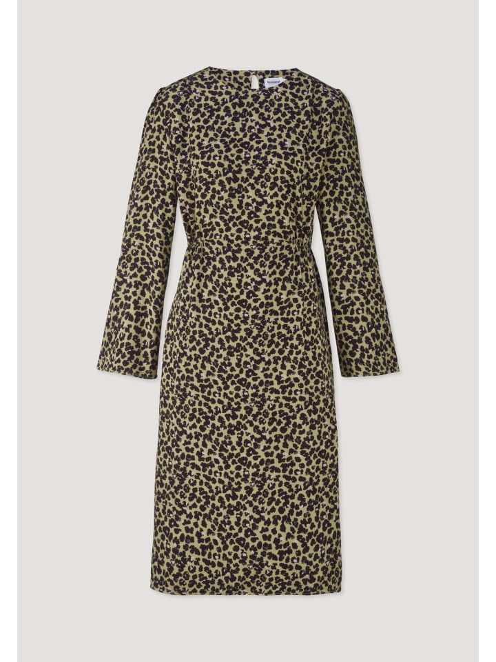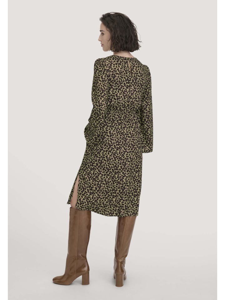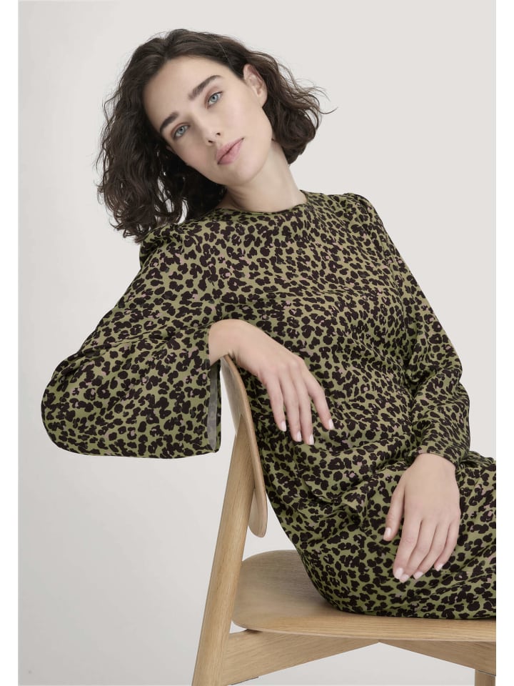 Смелое заявление и женственный силуэт? Сочетаются в этом платье. Это атласное платье с эксклюзивным минималистичным цветочным леопардовым принтом изготовлено из экологически чистого вискозного волокна LENZING ECOVERO. Струящийся атлас демонстрирует истинную преданность природе и занимает модную позицию. Женственный крой, легкий естественный блеск и комфорт обеспечивают сияние - как внутри, так и снаружи.