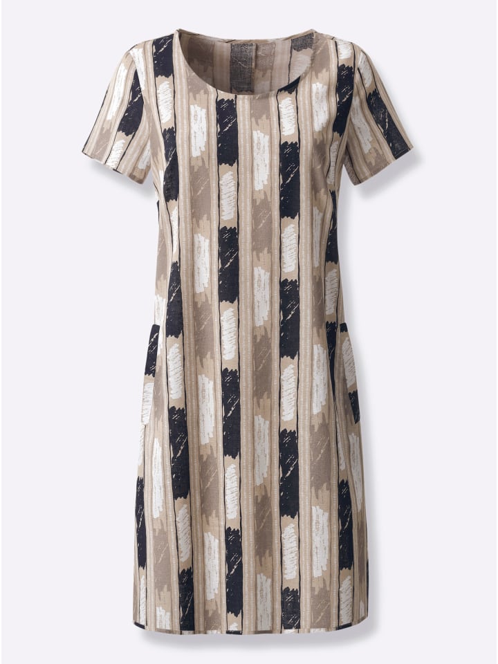 Модное платье, подчеркивающее фигуру: платье с принтом и эффектным дизайном из приятной ткани. Круглый вырез горловины, короткие рукава и два косых передних кармана. Вытачки на груди и вертикальный шов сзади обеспечивают оптимальную посадку. Соответствует инициативе «Сделано в Африке» (Cat. Made in Africa).