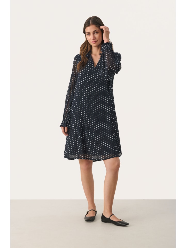 Платье BotellaPW, свободного кроя, в темно-синий горошек PART TWO