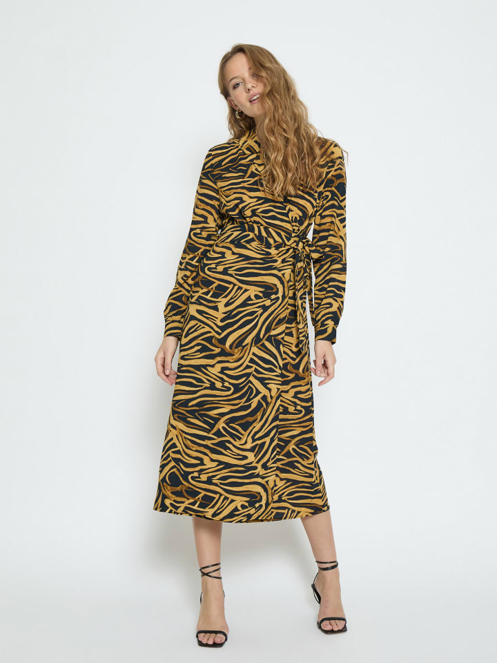 Ощутите непринужденную элегантность в платье миди DSFaith с длинными рукавами от Desires. Продуманный дизайн с V-образным вырезом подчеркивает вашу естественную грацию. Фасон с запахом подчеркивает силуэт, а длинные рукава красивого кроя добавляют изысканности, делая это платье универсальным дополнением к любому гардеробу. Эффектный узор по всему платью добавляет глубины и объема, а незаметный пояс на талии позволяет регулировать посадку. Сочетайте его с каблуками с ремешками для создания изысканного вечернего образа или с ботильонами для стильного дневного наряда - идеального варианта для любого случая, от бранча до ужина.