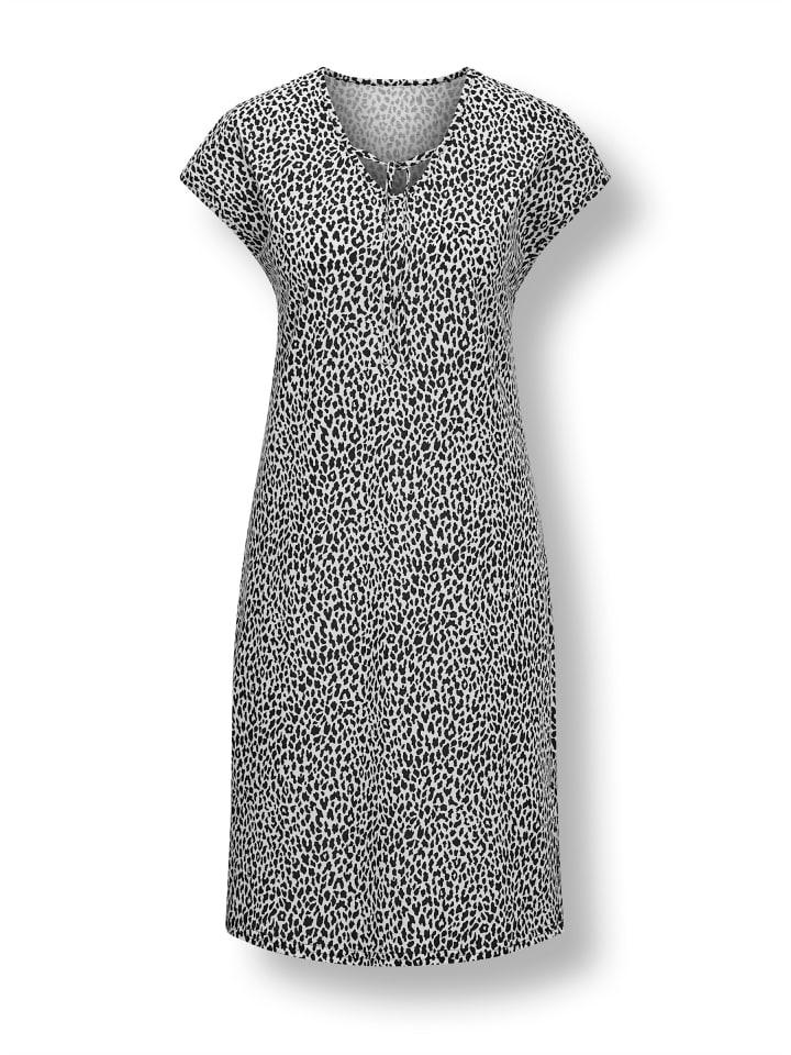 Это воздушное и легкое летнее платье с элегантным леопардовым принтом. Оно имеет привлекательный V-образный вырез с завязывающимся поясом и разрезом сбоку.