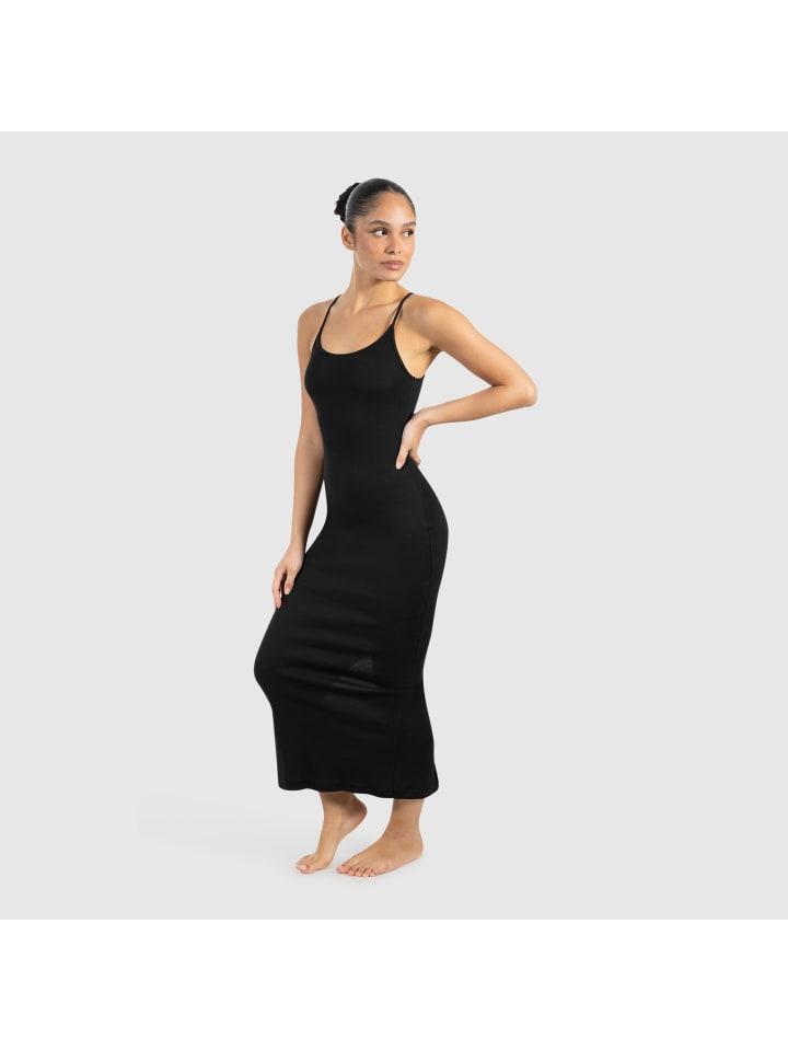 Это макси-платье сочетает в себе сдержанную элегантность и исключительный комфорт. Облегающий крой из тонкой рубчатой вязки подчеркивает силуэт, а тонкие бретельки и круглый вырез создают классический образ. Короткий разрез сзади обеспечивает большую свободу движений и подчеркивает женственность платья. Длина до щиколотки делает это платье универсальным и универсальным, подходящим как для повседневного, так и для элегантного образа. Эластичная ткань обеспечивает комфортную посадку в течение всего дня, что делает его идеальным для повседневной носки, отдыха и особых случаев.