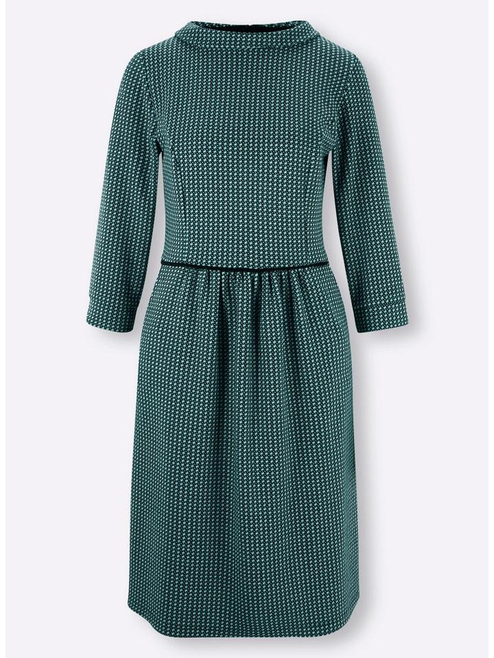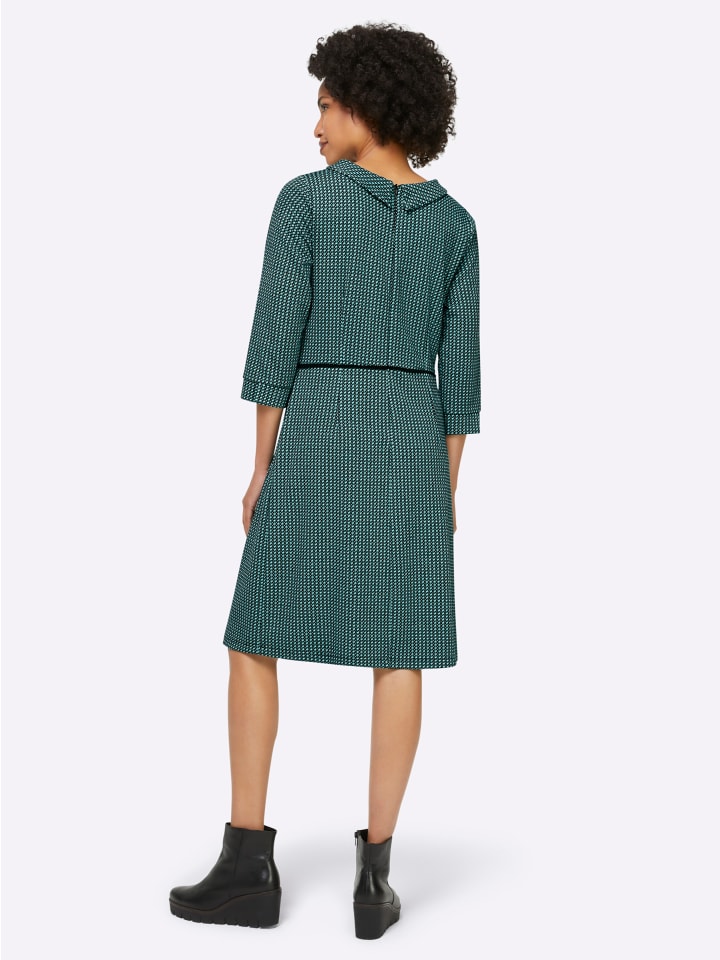 Платье из трикотажа с рукавами 3/4. Высокое содержание хлопка. Отложной воротник привлекает внимание. Юбка слегка присборена спереди. Боковые карманы и молния сзади.