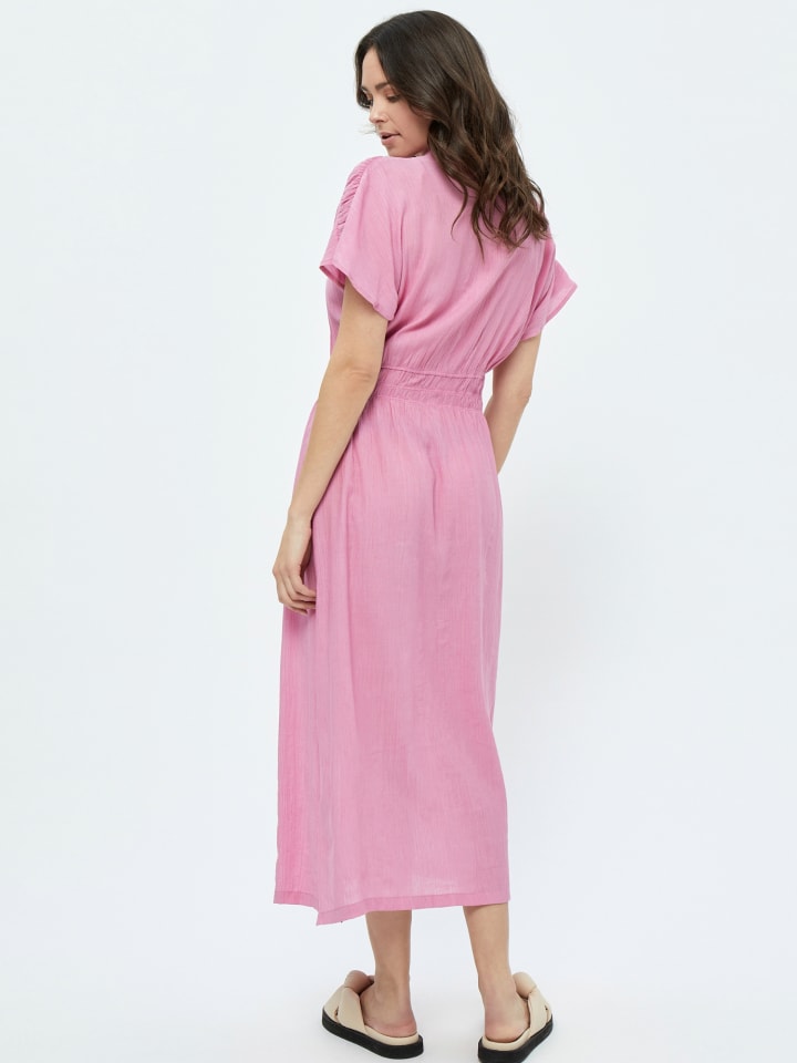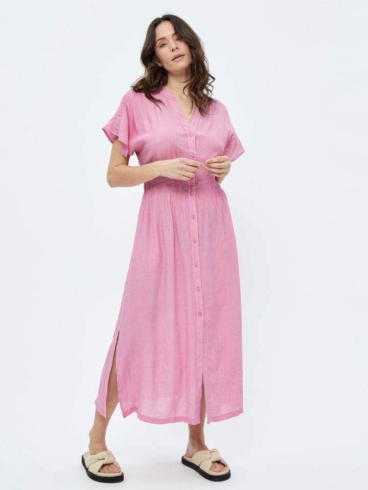 Платье Nabatanzi из вискозной смеси мягкое и приятное на ощупь. Платье-рубашка с короткими рукавами и V-образным вырезом создает непринужденный образ. Длина платья - миди, пояс на резинке для идеальной посадки.