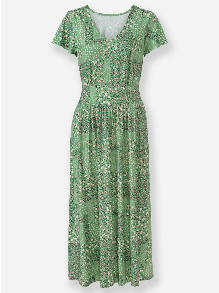 Платье из джерси с плавно струящимся силуэтом и эффектным принтом. Сборки по плечевому шву и на талии создают привлекательный силуэт. Среди других привлекательных деталей - визуально удлиняющий V-образный вырез, присборенная спинка и рукава-крылышки, которые драпируются на плечах, создавая привлекательный силуэт. Изготовлено из вискозы ECOVERO производства Lenzing.