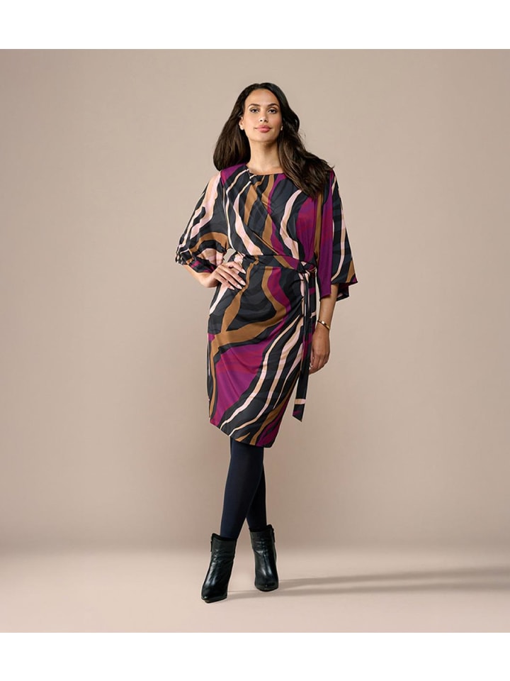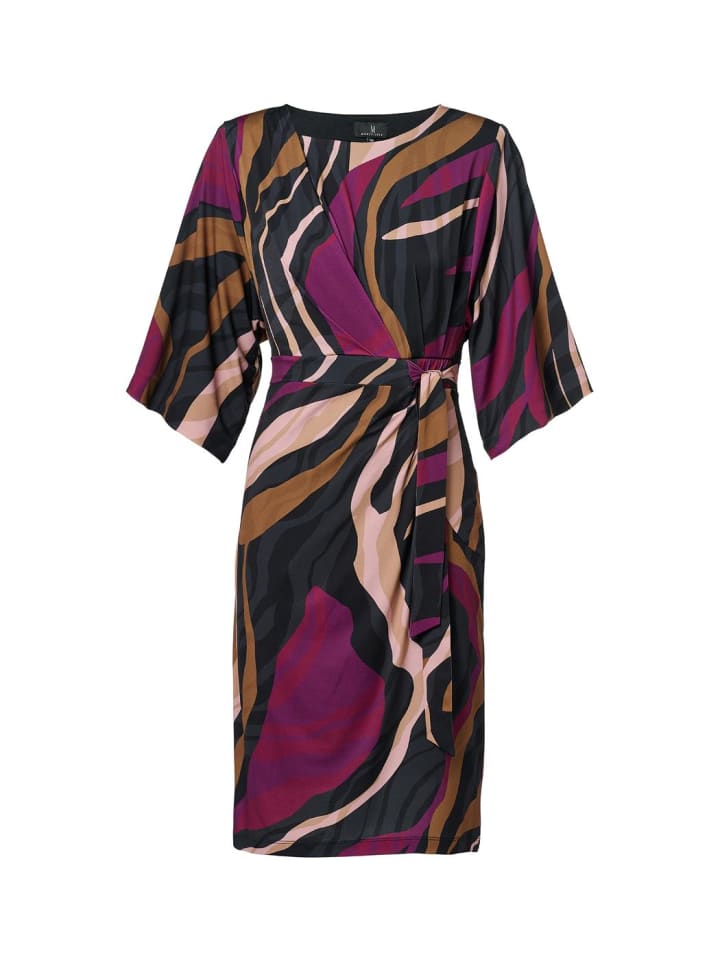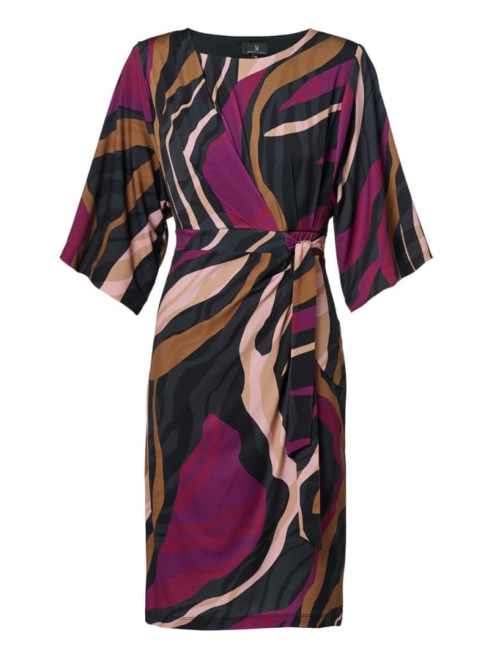 Платье Milan от Mart Visser сочетает в себе современную элегантность и непринужденный комфорт. Это платье длиной до колена выполнено из роскошного эластичного трикотажа с эффектным абстрактным принтом в нежных оттенках розового, черного и белого. Искусный дизайн создает игривый и в то же время изысканный образ. Струящаяся ткань струится вместе с вами и приятно ощущается на коже, а не мнется и не требует особого ухода. Платье полностью на подкладке из эластичной ткани обеспечивает идеальную посадку. Рукава-кимоно добавляют элегантности, драпированный вырез горловины - изысканности, а присборенная талия создает утонченный, естественно подчеркивающий фигуру силуэт. Стильный выбор для любого случая.