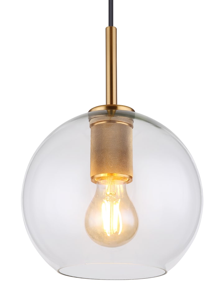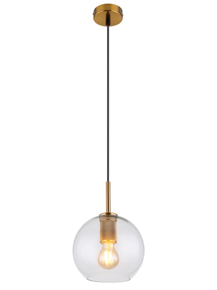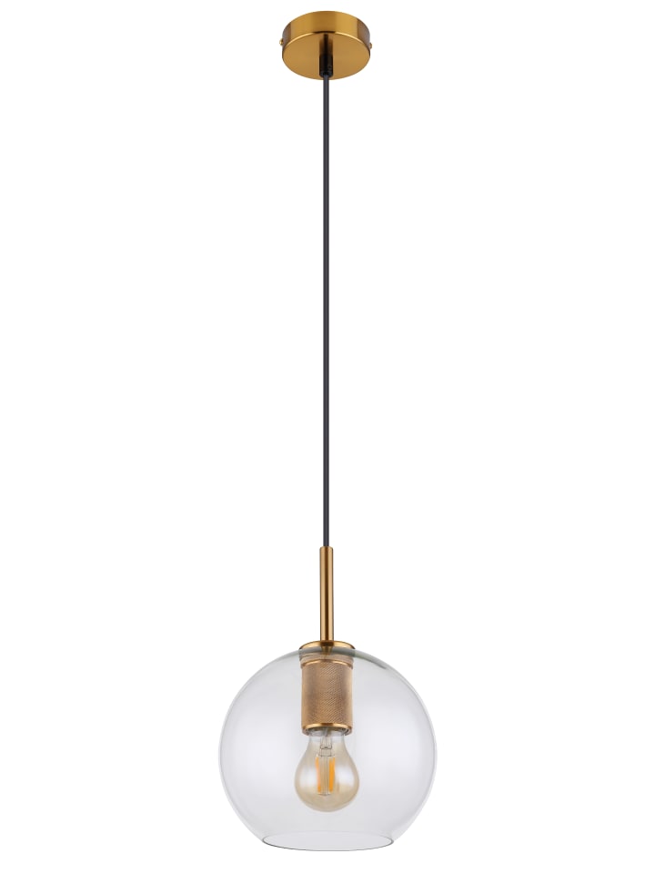 Подвесной светильник, металл цвета латуни, матовая отделка, прозрачное стекло, черный ПВХ-кабель, регулируемая высота, диаметр: 200 мм, высота: 1200 мм, без 1 лампы E27 60 Вт 230 В
