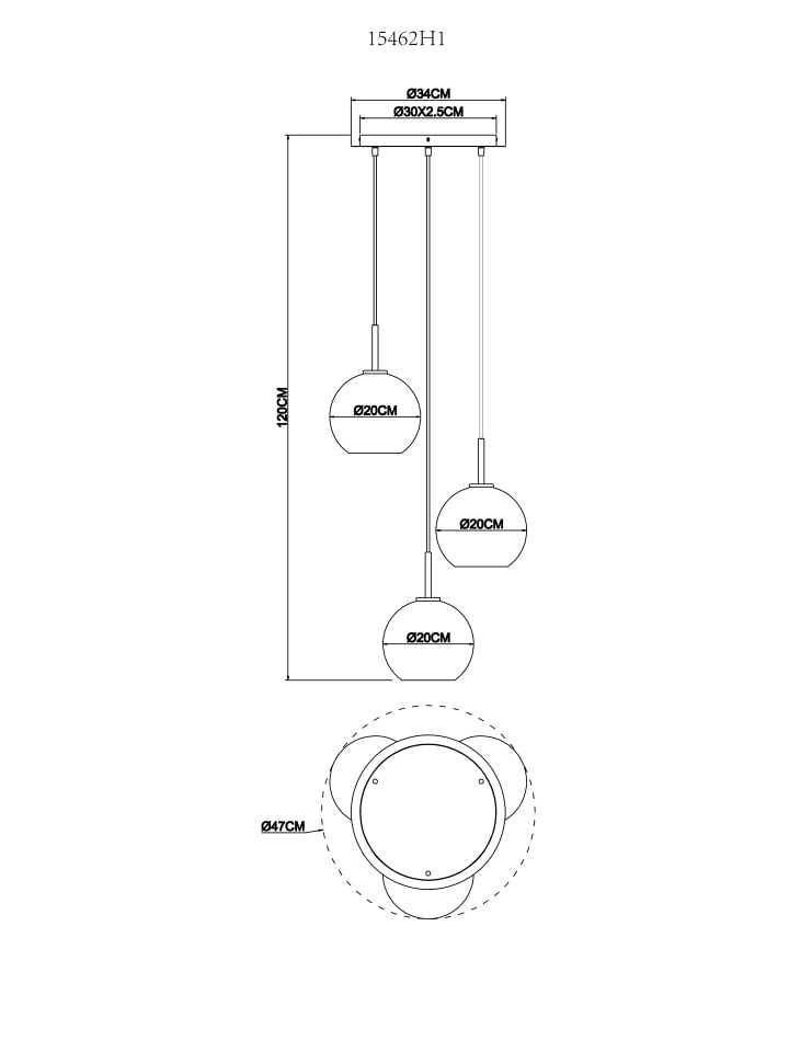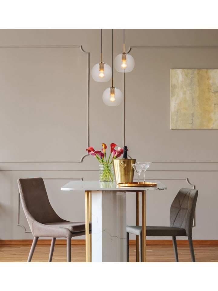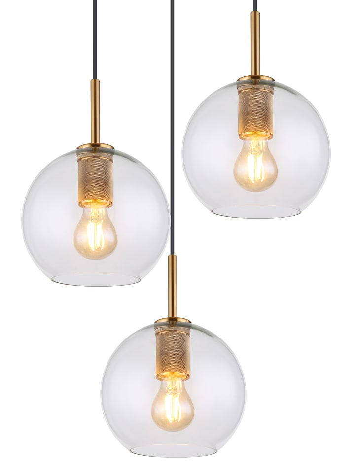 Подвесной светильник, металл цвета латуни, матовая отделка, прозрачное стекло, черный ПВХ-кабель, регулируемая высота, диаметр: 470 мм, высота: 1200 мм, без 3 ламп E27 60 Вт 230 В