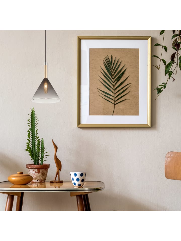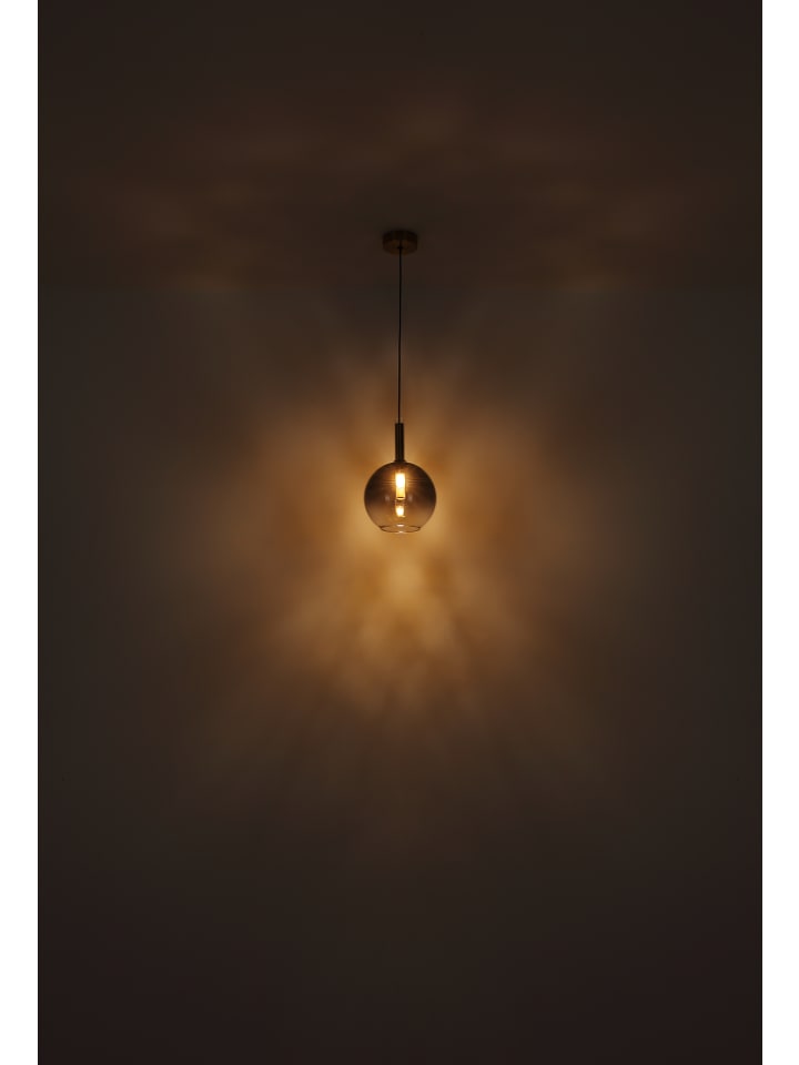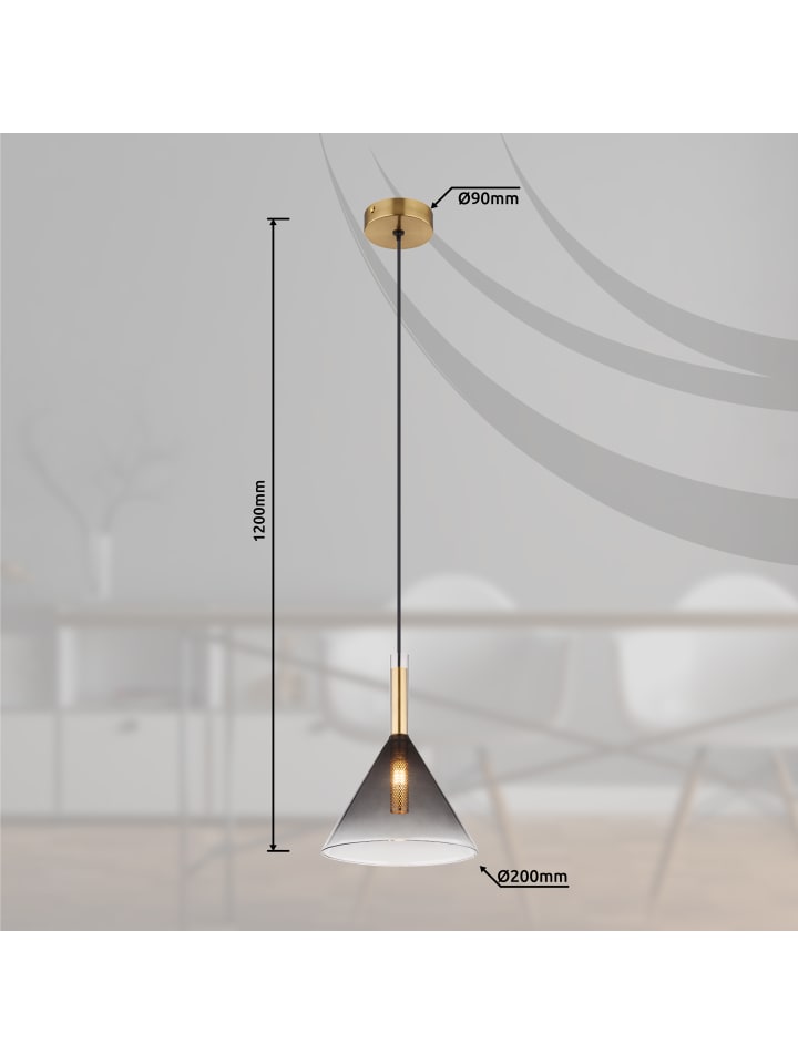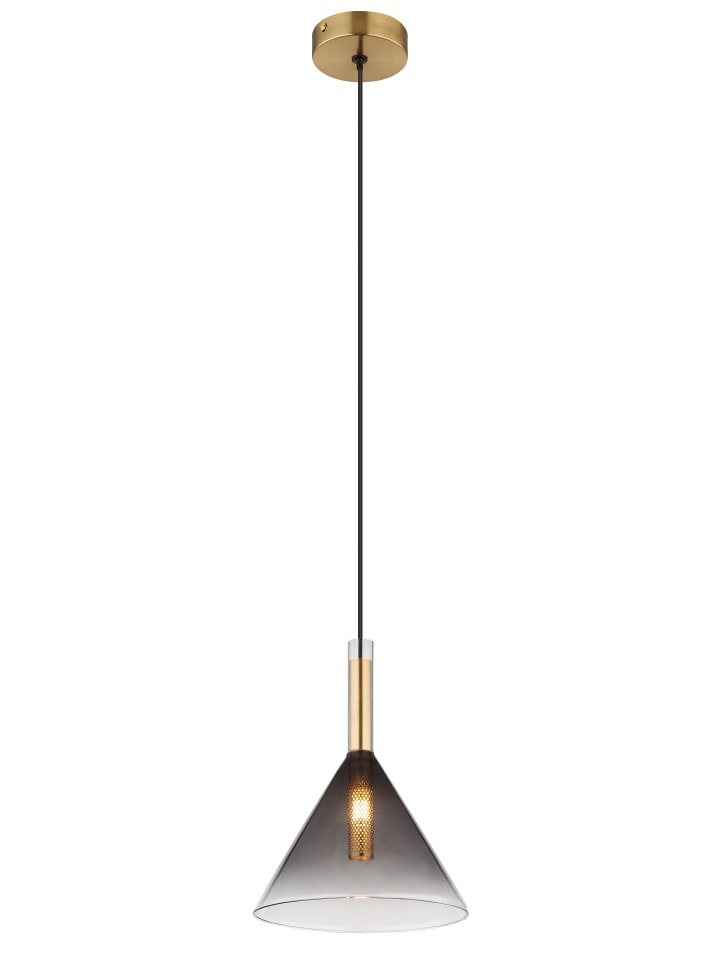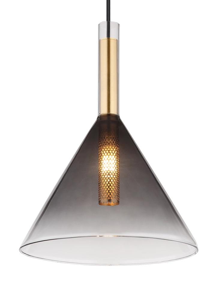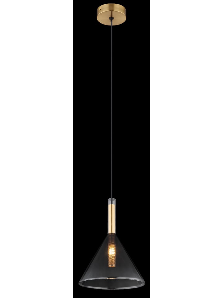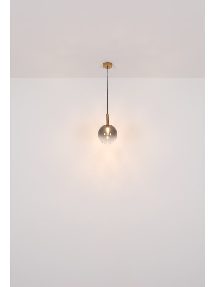 Подвесной светильник, металл цвета латуни, дымчатое стекло с четким градиентом, черный кабель из ПВХ, регулируемая высота, диаметр: 200 мм, высота: 1200 мм, без 1 светодиодной лампы G9 10 Вт 230 В