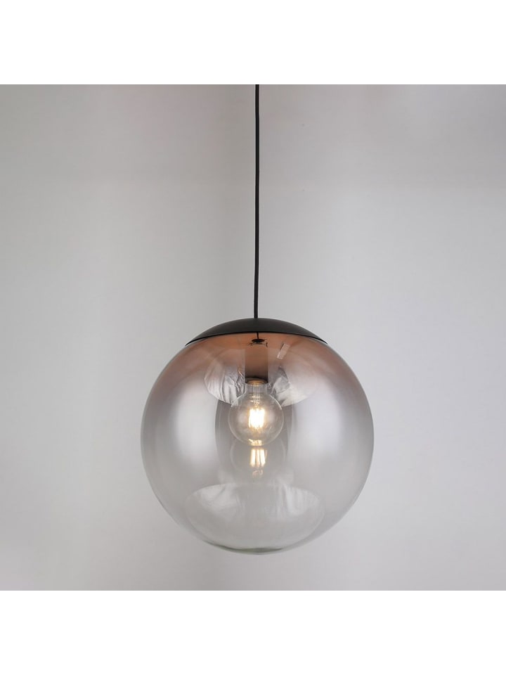 Современная стеклянная сфера с пленительным цветовым градиентом и элегантным черным подвесом: это подвесной светильник s.luce pro Progress.
