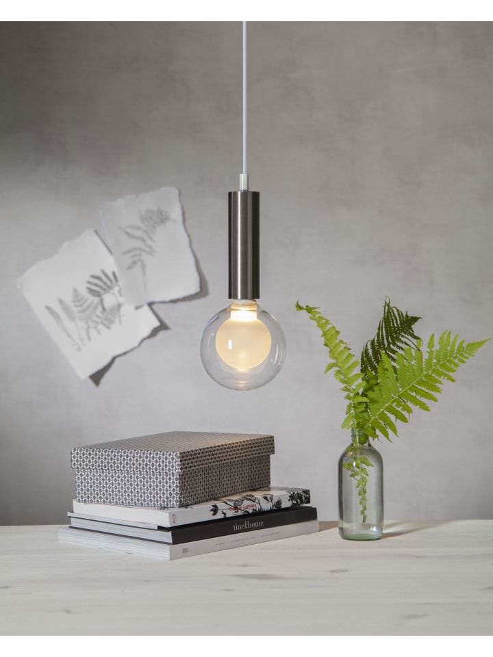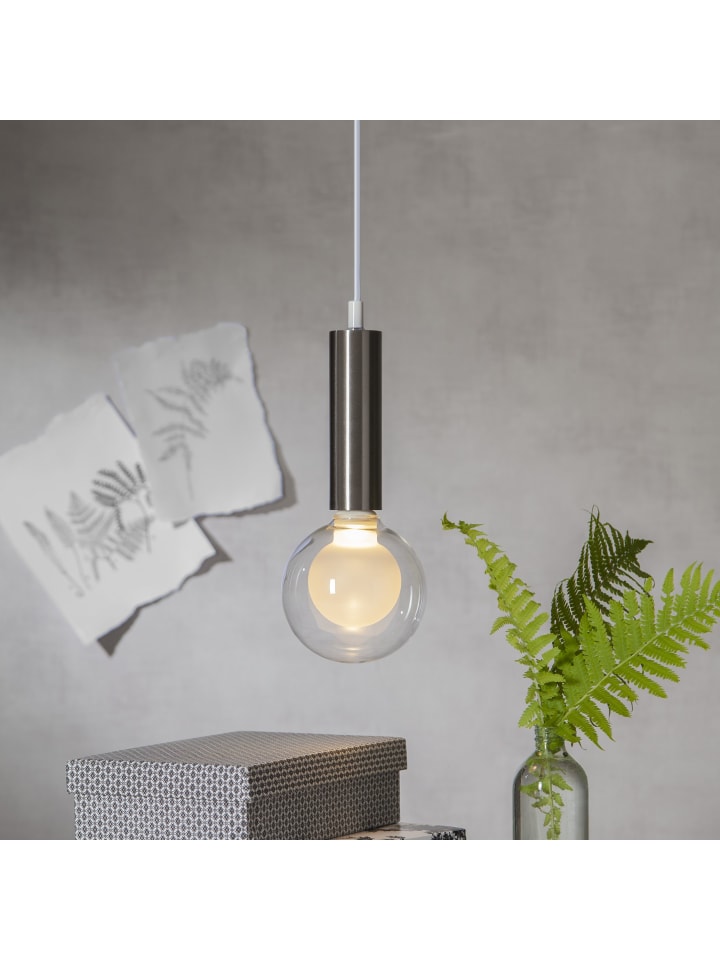 Патрон E27 с выключателем для подвесного монтажа - питание от сетевой розетки Подвесной светильник «Glans» из шлифованного металла с патроном E27 - это гибкое и быстрое решение для размещения красивых лампочек в любом месте.