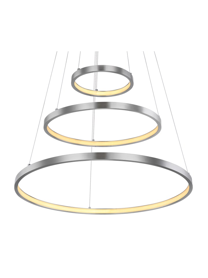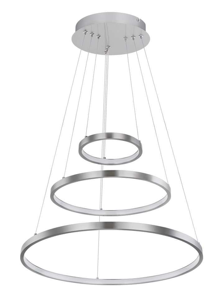 Подвесной светильник, металл, матовое никелевое покрытие, опаловый пластик, с регулировкой яркости, функцией памяти, регулируемой высотой, плавной регулировкой яркости с помощью настенного переключателя, ø: 510 мм, H: 1200 мм, в комплекте светодиод 57 Вт 230 В, источник 550-6800 лм, световой поток 220-2200 лм, цветовая температура 3000 К