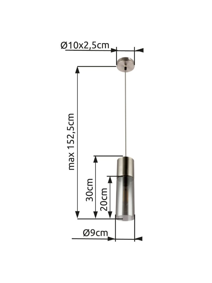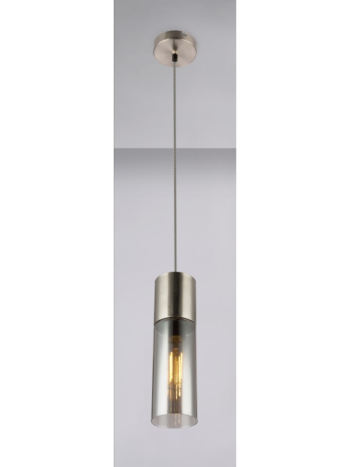 Подвесной светильник, металл, матовое никелевое покрытие, античный вид, стекло, черно-белый текстильный провод, регулируемая высота, диаметр: 105 мм, высота: 1525 мм, длина провода: 1200 мм, без 1 цоколя E27 25 Вт 230 В