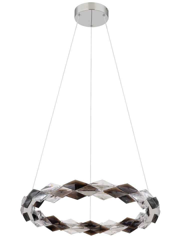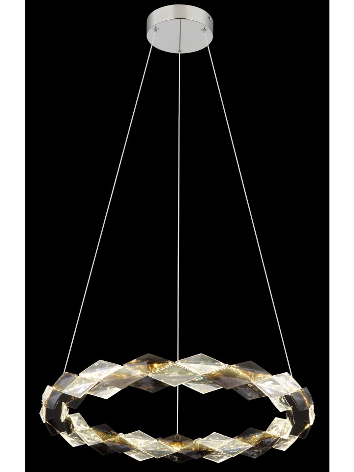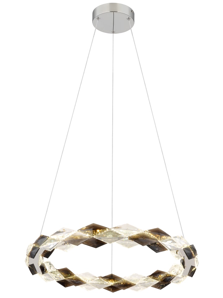 Подвесной светильник, хромированный металл, дымчатые и прозрачные акриловые кристаллы, регулируемая высота, диаметр: 550 мм, высота: 1300 мм, в комплекте светодиод 36 Вт 230 В, источник света 4100 лм, световой поток 920 лм, цветовая температура 4000 К