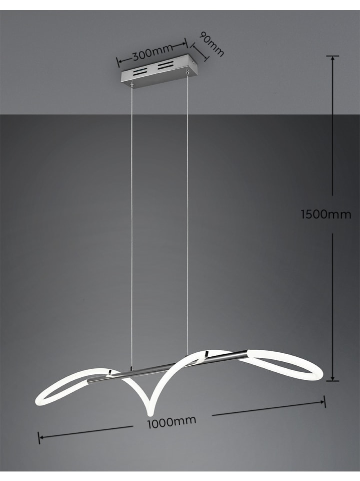 Подвесной светильник ARGOS с динамичным дизайном воплощает современную легкость и станет гармоничным элементом освещения вашего дома. Встроенный диммер SWITCH позволяет регулировать яркость света на трех уровнях (100%, 50% и 25%) с помощью стандартного выключателя. Разместившись в гостиной или столовой, он станет центральным элементом и стильно впишется в любой интерьер. Эффектная хромированная отделка с белым покрытием добавит вашему дому нотку изысканной элегантности. Кроме того, светильник оснащен современной светодиодной технологией, которая отличается высоким качеством света и энергоэффективностью. По сравнению с традиционными галогенными лампами, вы можете сэкономить до 80% на электроэнергии. Кроме того, светодиодные источники света имеют длительный срок службы, меньше нагреваются и экологичны. - IP20 - Металл - SMD - Лампа в комплекте - Высота 150 см - Ширина 105 см - Глубина 34 см - Диммер с выключателем - Крепление к потолку - Регулировка высоты