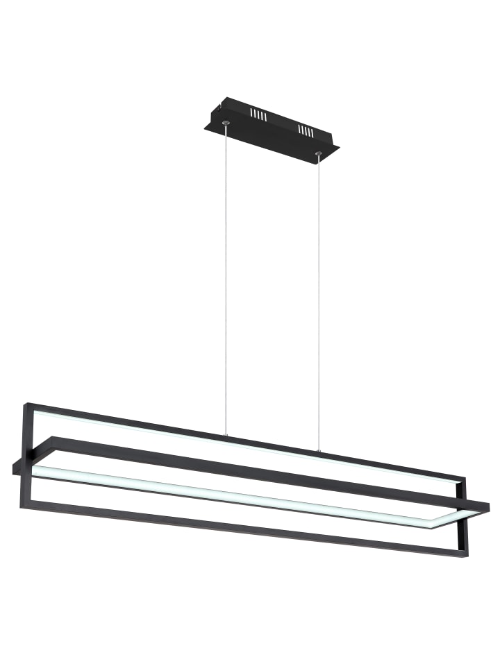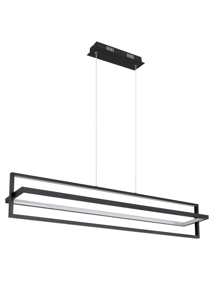 Подвесной светильник, матовый черный металл, опаловый пластик, регулировка яркости, несколько уровней яркости с помощью настенного переключателя, блокировка цветов, функция памяти, ночник, таймер, регулировка высоты, поворотный/вращающийся, пульт дистанционного управления, батарейки в комплекте (2 шт. AAA), размеры (ДxШxВ): 1020x180x1200 мм, в комплекте светодиод 43 Вт 230 В, источник 240-4350 лм, световой поток 150-1500 лм, цветовая температура 2700-6500 К