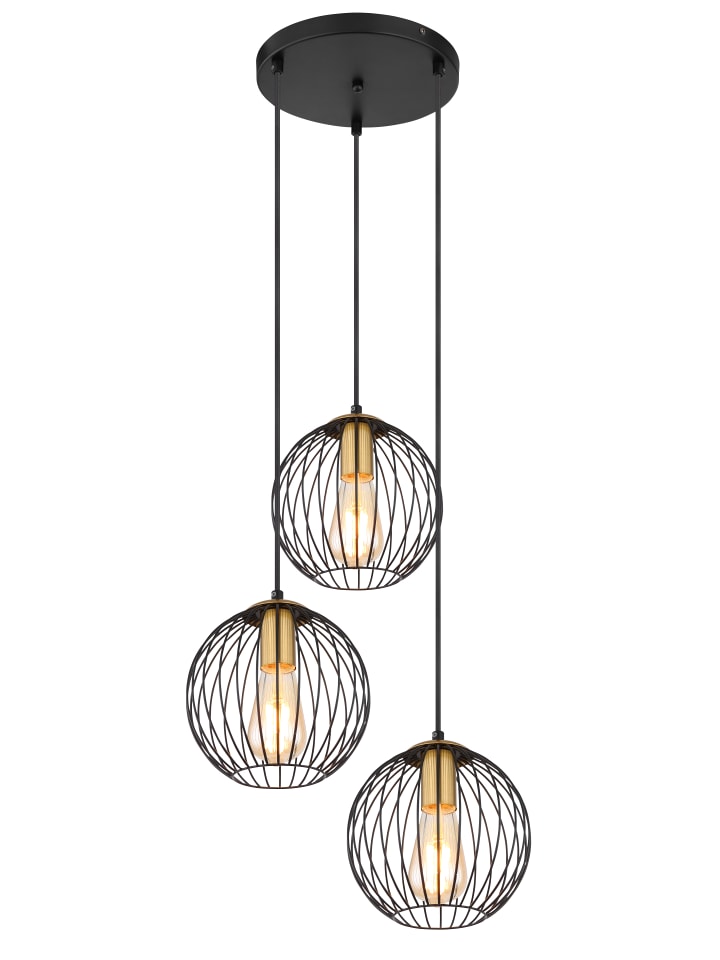 Подвесной светильник, металлический, черный, цвета латуни, черный металл, черный текстильный кабель, регулируемая высота, ø: 390 мм, H: 1500 мм, без 3 ламп E27 60 Вт 230 В