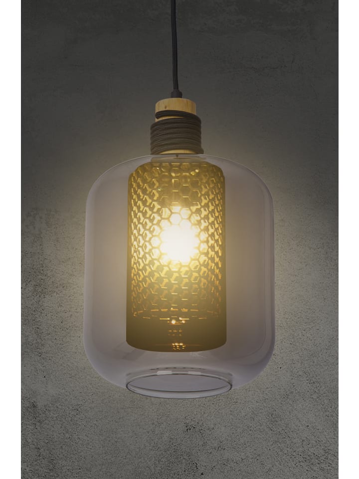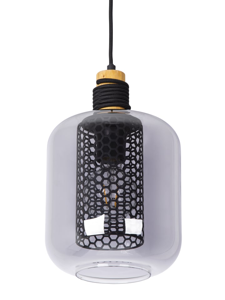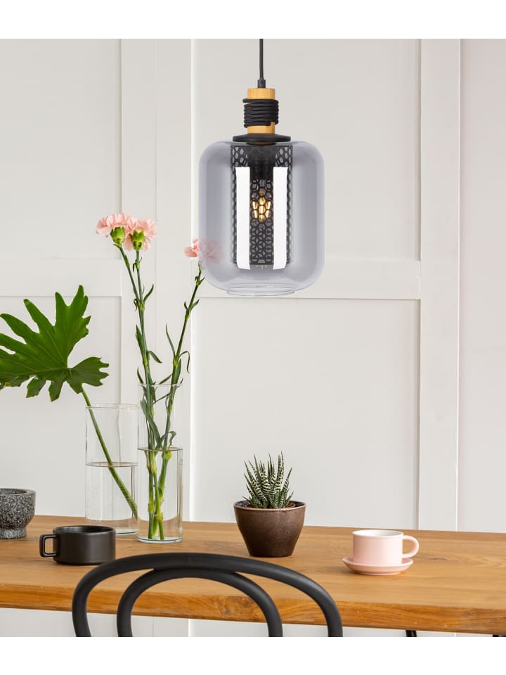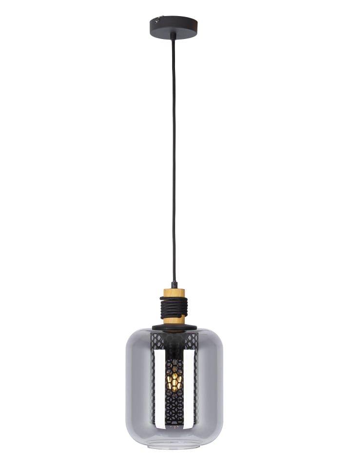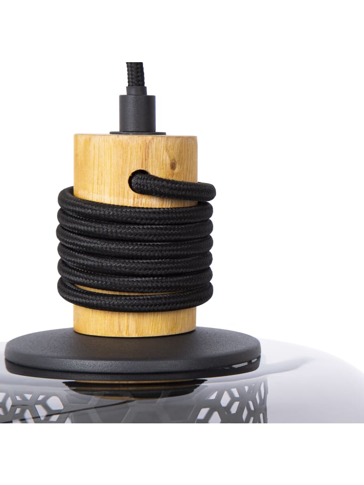 Подвесной светильник, металл, дерево, черное дымчатое стекло, регулируемая высота, ø: 200 мм, H: 1500 мм, без 1 цоколя E27 40 Вт 230 В