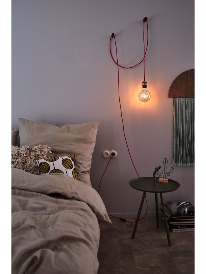 Подвесной светильник Eldar со встроенным выключателем на кабеле обеспечивает стильное освещение в стиле ретро. 5-метровый подвесной светильник оснащен евровилкой, что позволяет подключать его непосредственно к любой стандартной розетке. Сочетание красного тканевого кабеля и полированного цоколя E27 делает этот подвесной светильник декоративным акцентом. Независимо от того, используется ли он по отдельности или в составе группы, его можно комбинировать с декоративной лампочкой для создания уникальных световых эффектов.