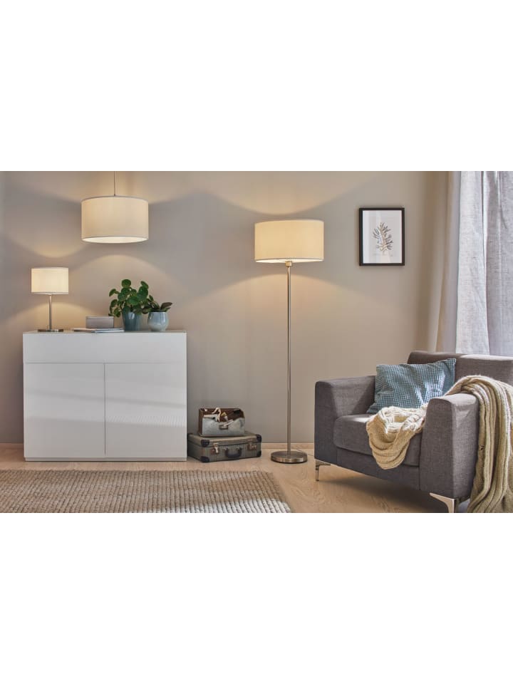 Классическая красота: подвесной светильник Tessa с тканевым абажуром кремового цвета. Создайте свою собственную индивидуальную, комфортную схему освещения для гостиных, спален или столовых с подходящими настольными и напольными лампами серии Tessa.