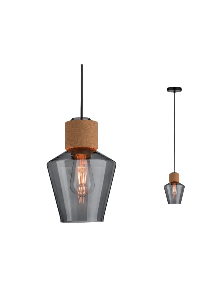Подвесной светильник Neordic Edla E27 макс. 20 Вт Дымчатое стекло #Пробка #Черное стекло с регулируемой яркостью #Пробка #Металл