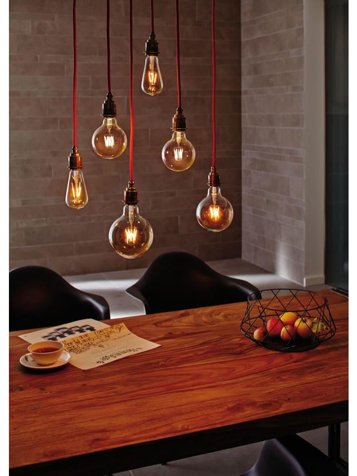 Подвесной светильник Eldar - это стильный светильник в стиле ретро. Сочетание красного тканевого кабеля и полированного цоколя делает подвесной светильник декоративным акцентом. Независимо от того, установлен ли он отдельно или в группе, его можно комбинировать с декоративными лампочками для создания индивидуальных сценариев освещения.
