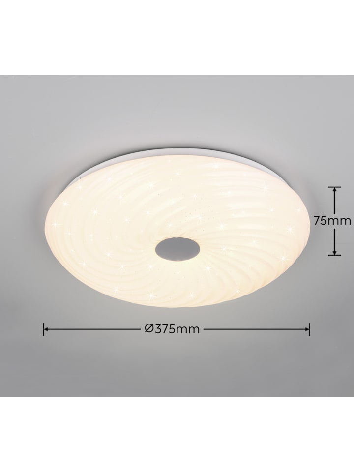 Потолочный светильник GRAVITY приглашает вас помечтать благодаря притягательному эффекту звездного неба и простому плафону. Входящий в комплект пульт дистанционного управления позволяет удобно регулировать цвет и яркость освещения на расстоянии. Поэтому он идеально подходит для использования в гостиной или спальне, особенно когда вы уже удобно устроились под потолком и хотите настроить освещение в соответствии с вашим расслабленным настроением. Неподвластный времени дизайн плафона, выполненный в элегантном белом и хромированном цветах, гармонично вписывается в существующий интерьер. Кроме того, светильник оснащен современной светодиодной технологией, которая обеспечивает высокое качество света и энергоэффективность. По сравнению с обычными галогенными лампами, он позволяет сэкономить до 80% электроэнергии. Кроме того, светодиодные лампы обладают такими преимуществами, как длительный срок службы, низкое тепловыделение и экологичность.