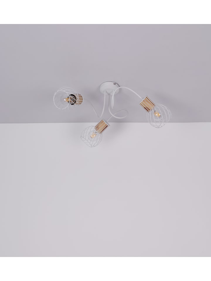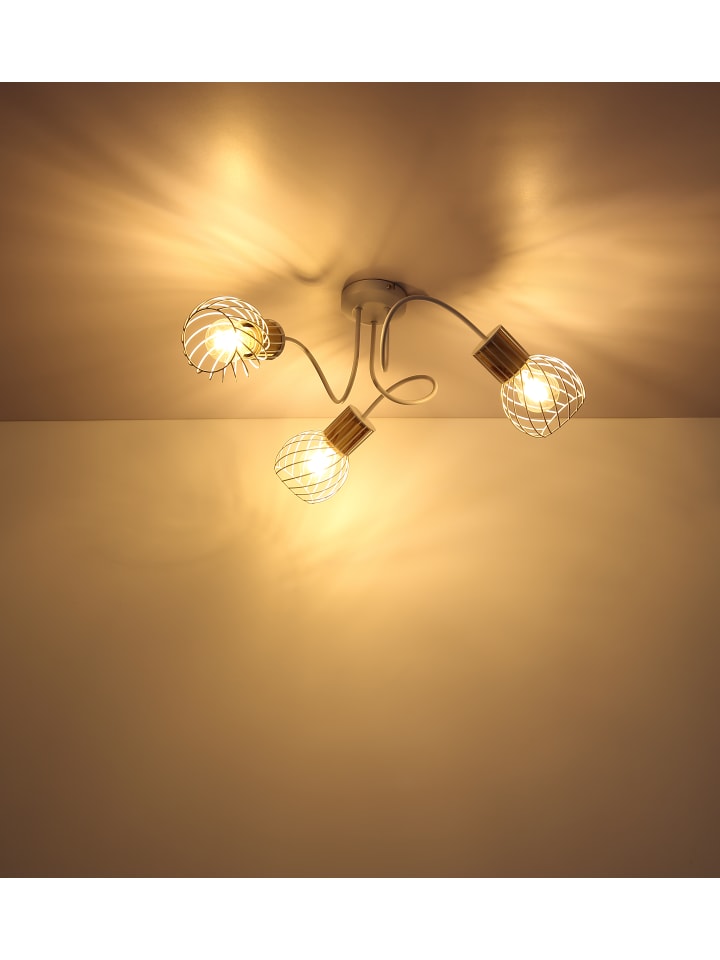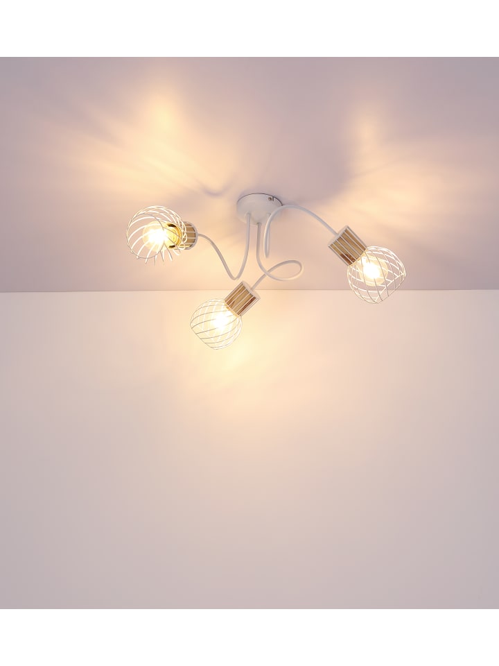 Потолочный светильник, металлический, белый, имитация дерева, металлический, белый, ø: 600 мм, H: 240 мм, без 3 ламп E27 40 Вт 230 В