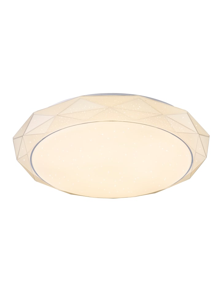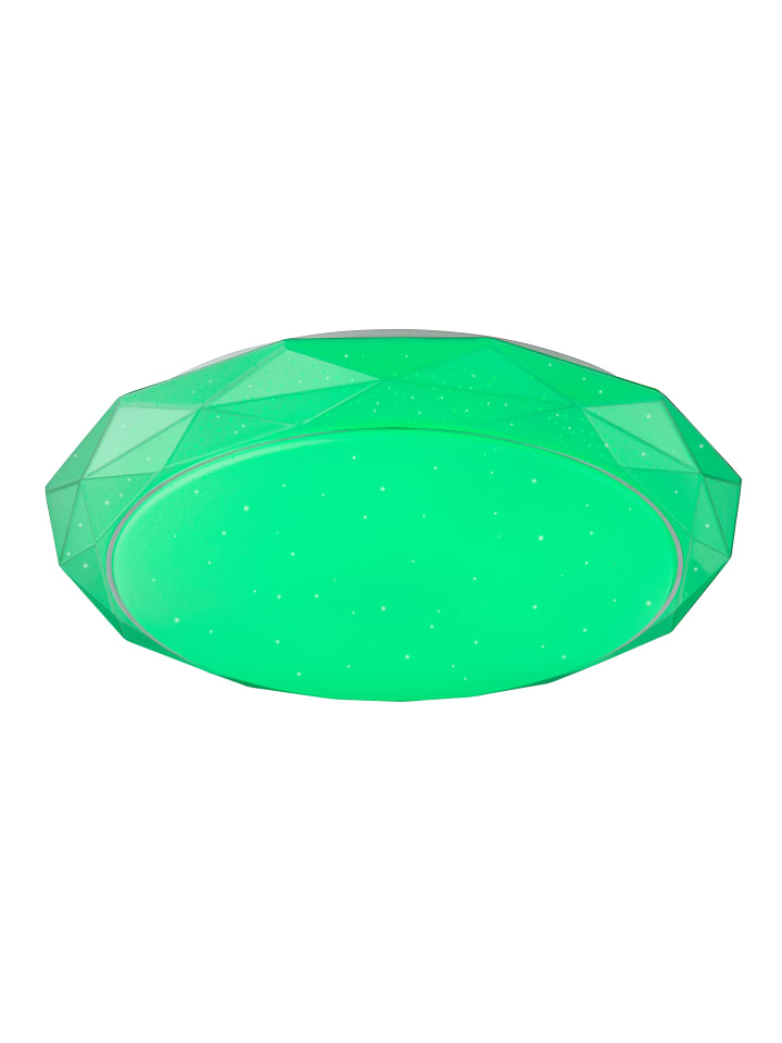 Потолочный светильник, белый металл, матовый акрил, регулировка яркости, несколько уровней с помощью настенного переключателя, смена цветов, возможность фиксации цветов, смена цветов RGB, возможность фиксации цветов RGB, функция памяти, ночник, пульт дистанционного управления, батарейки в комплекте (2 x AAA 200 мА·ч), ø: 500 мм, H: 90 мм, в комплекте светодиод 45 Вт 230 В, источник света 490-4900 лм, световой поток 350-3360 лм, цветовая температура 3000-6500 К, в комплекте светодиод RGB 10 Вт 230 В, разноцветный