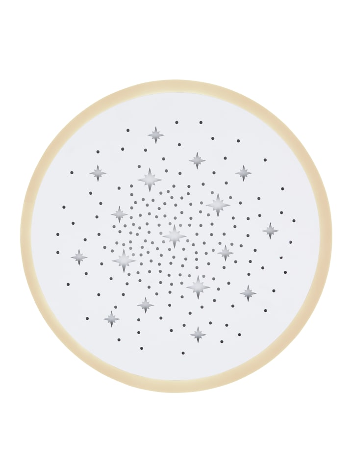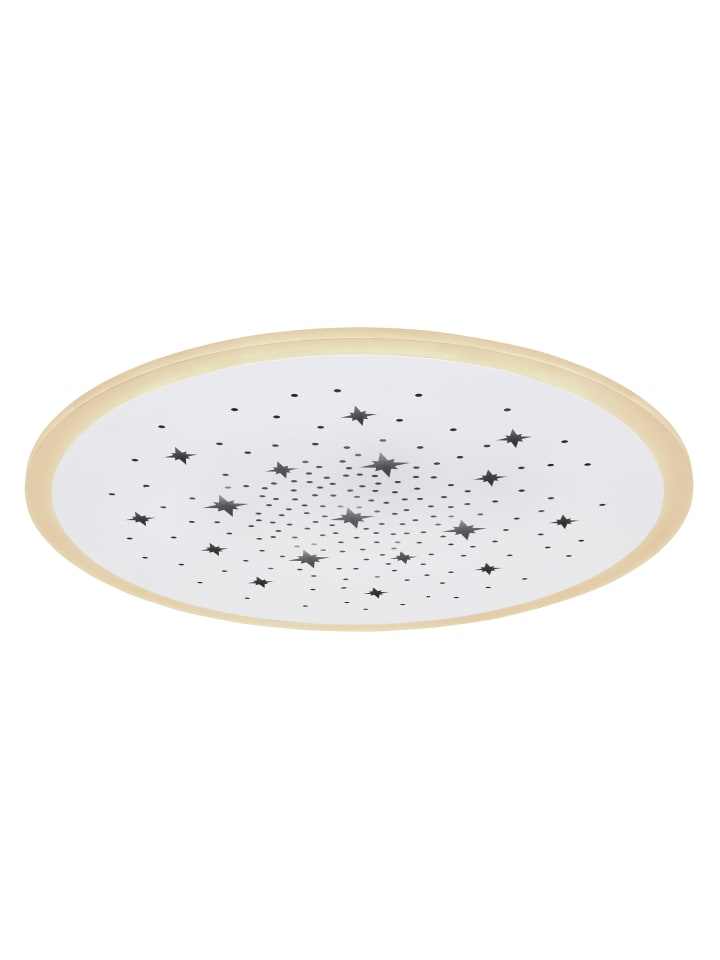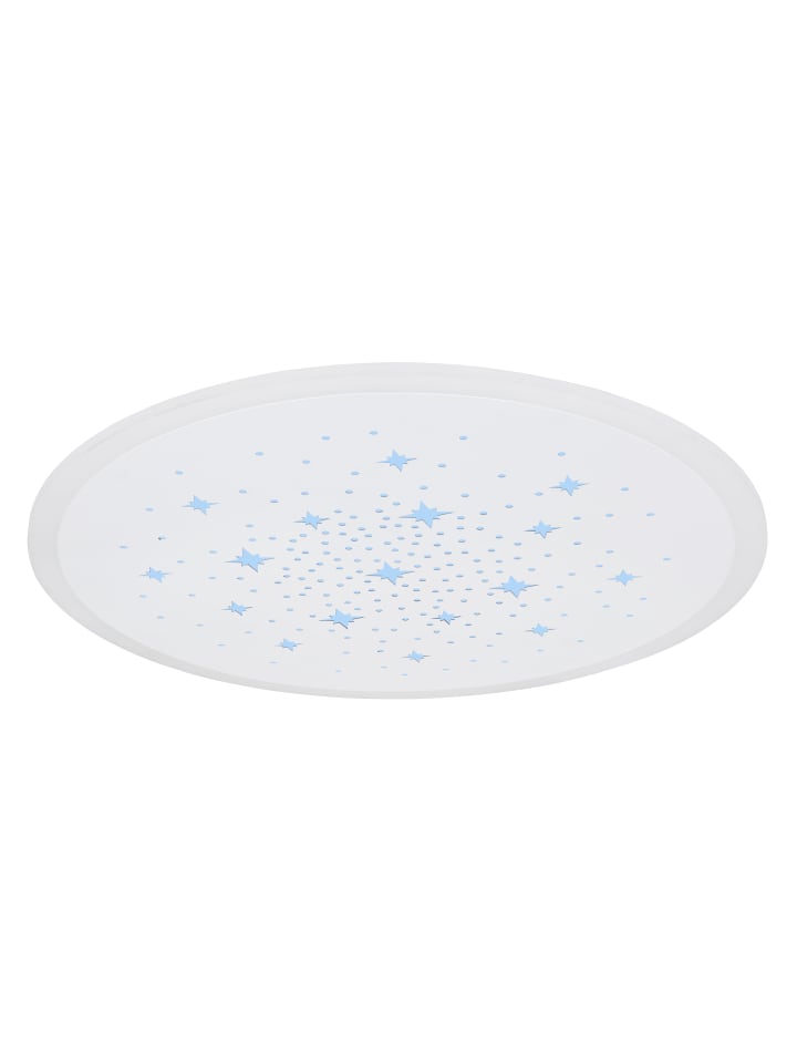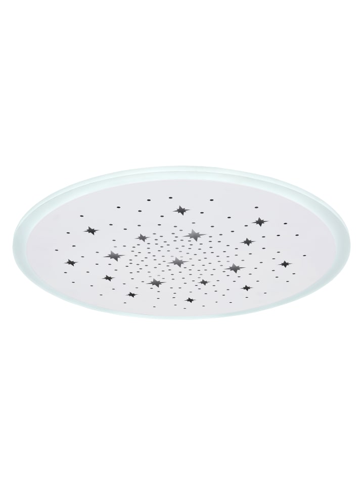 Потолочный светильник, металл и пластик, белый, с регулировкой яркости, блокировкой цвета, RGB-переключатель цветов, блокировка цветов RGB, функция памяти, ночник, пульт дистанционного управления, батарейки в комплекте (2 x AAA), абажур с вырезами в виде звезд, ø: 380 мм, H: 50 мм, в комплекте светодиод 18 Вт 230 В, источник света 1700 лм, световой поток 1300 лм, цветовая температура 2700-6500 К, в комплекте светодиод RGB 4 Вт 230 В