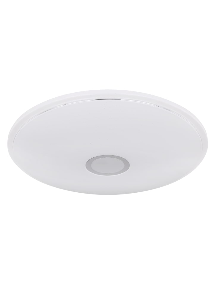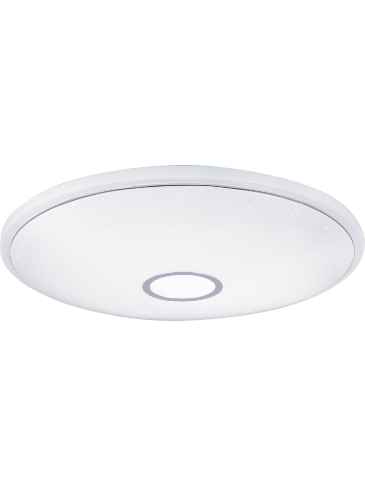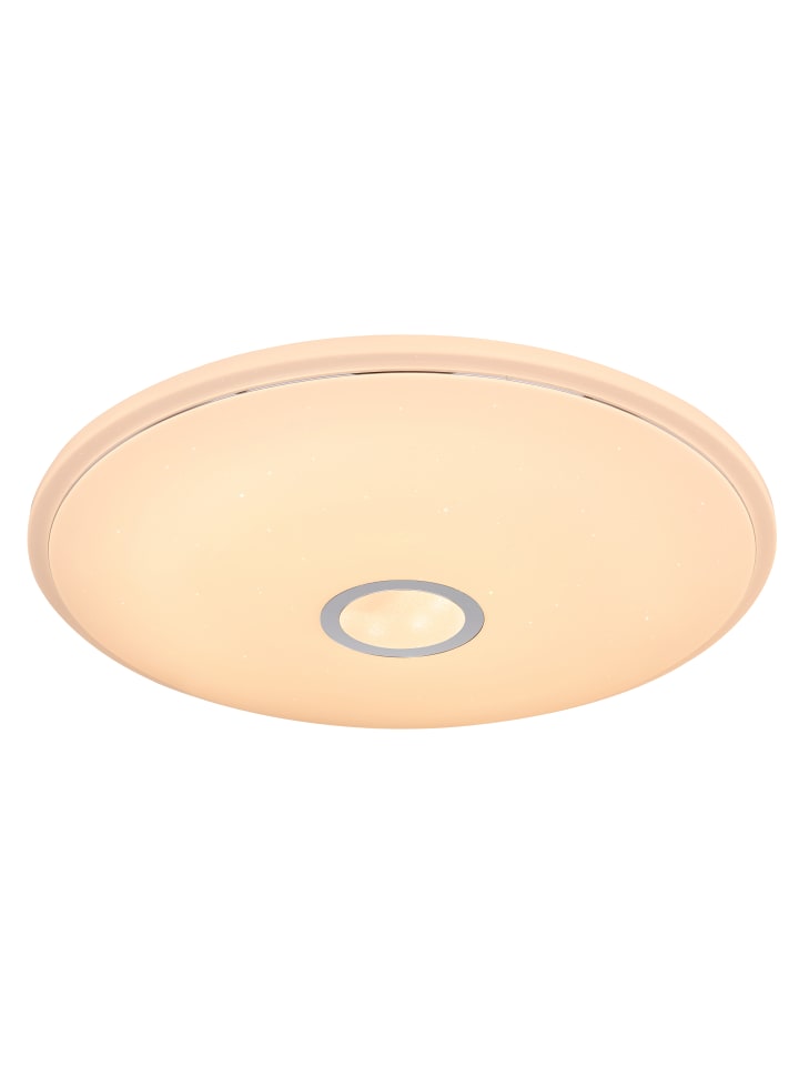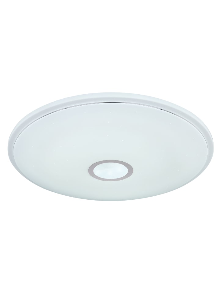 Потолочный светильник, белый металл, опаловый акрил, хромированное кольцо, регулировка яркости, смена цветов, фиксированные цвета, SmartLight, приложение, функция памяти, ночник, таймер, пульт дистанционного управления, в комплекте 2 батарейки типа ААА, совместим с Smart Home и Alexa, диаметр: 680 мм, высота: 90 мм, в комплекте светодиод 30 Вт 230 В, источник света 300-3150 лм, световой поток 222-2250 лм, цветовая температура 3000-6500 К, в комплекте светодиод RGB 5 Вт 230 В, многоцветный