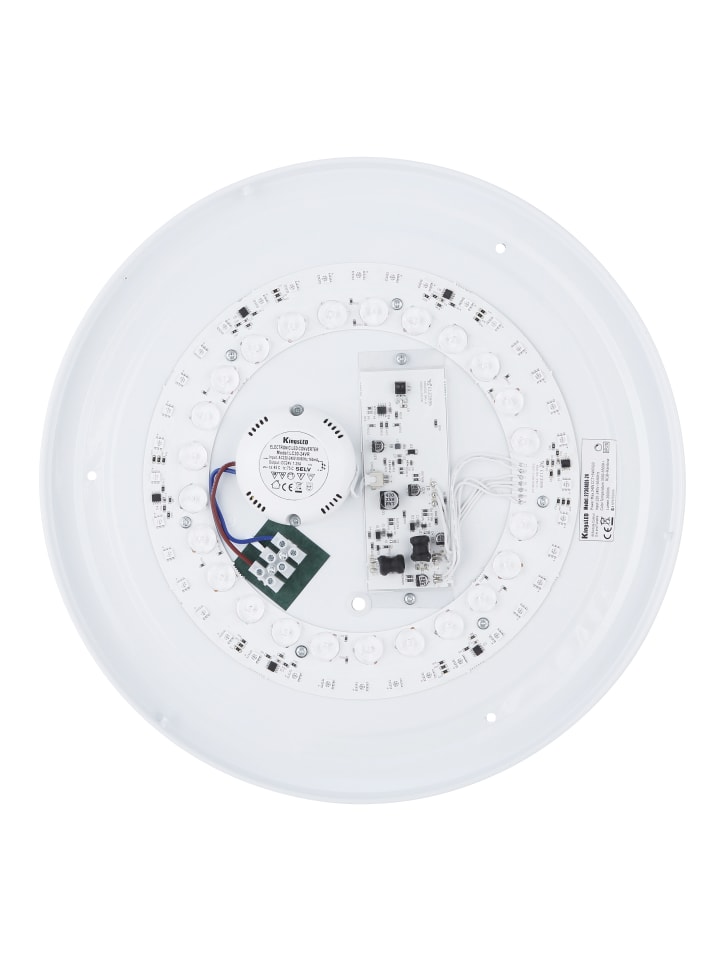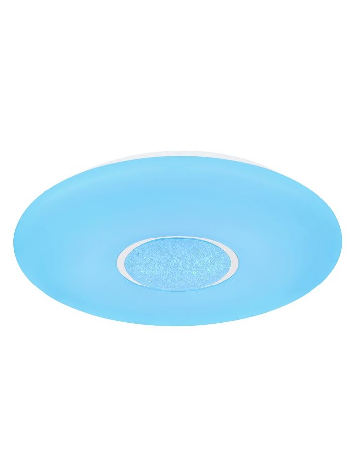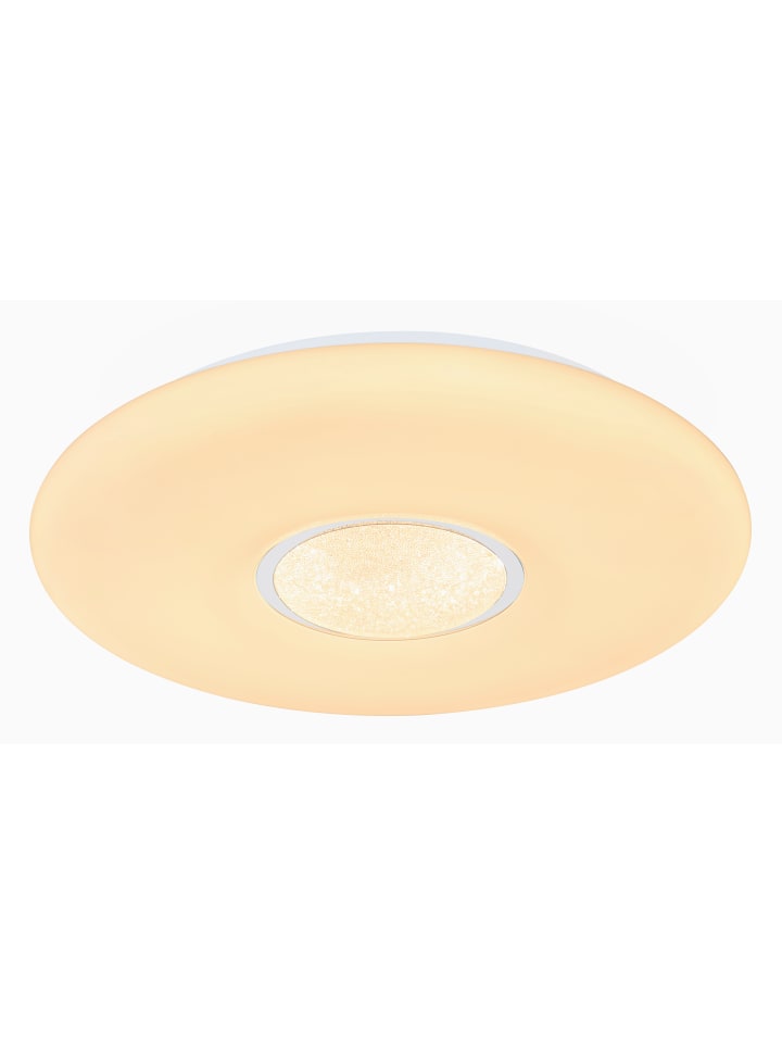 Потолочный светильник, белый металл, опаловый пластик, прозрачные стеклянные кристаллы, регулировка яркости, смена цветов, фиксированные цвета, эффект радуги RGB, функция памяти, ночник, пульт дистанционного управления, батарейки в комплекте (2 x AAA), ø: 410 мм, H: 70 мм, в комплекте светодиод 24 Вт 230 В, источник света 2500 лм, световой поток 1500 лм, цветовая температура 3000-6500 К, в комплекте светодиод RGB 6 Вт 230 В, разноцветный