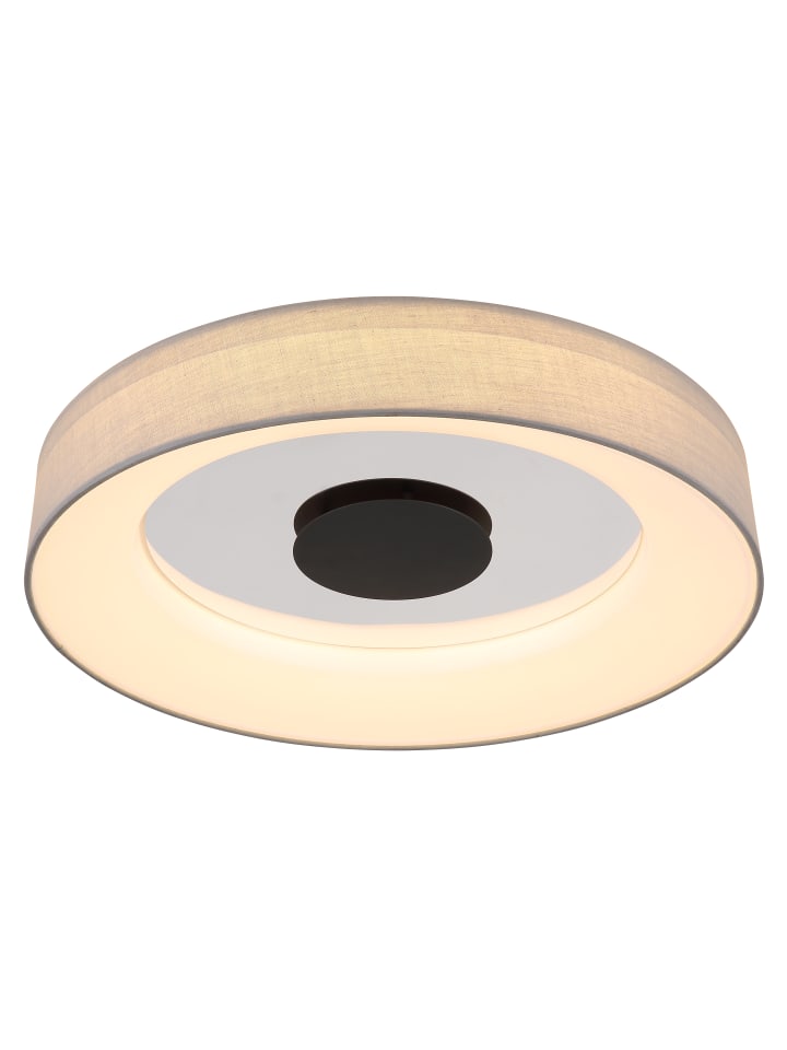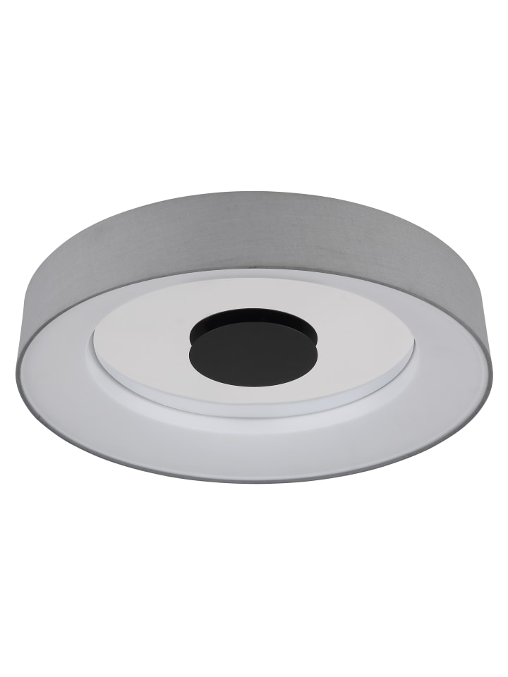 Потолочный светильник, металл матово-белый, металл матово-черный, текстильно-серый, опаловый пластик, хромированный акрил, регулировка яркости, блокировка цвета, Bluetooth, функция памяти, ночник, пульт дистанционного управления, динамик 5 Вт, батарейки в комплекте (2 шт. AAA), ø: 468 мм, H: 98 мм, в комплекте светодиод 40 Вт 230 В, источник света 800-4500 лм, световой поток 350-2000 лм, цветовая температура 2700-6500 К