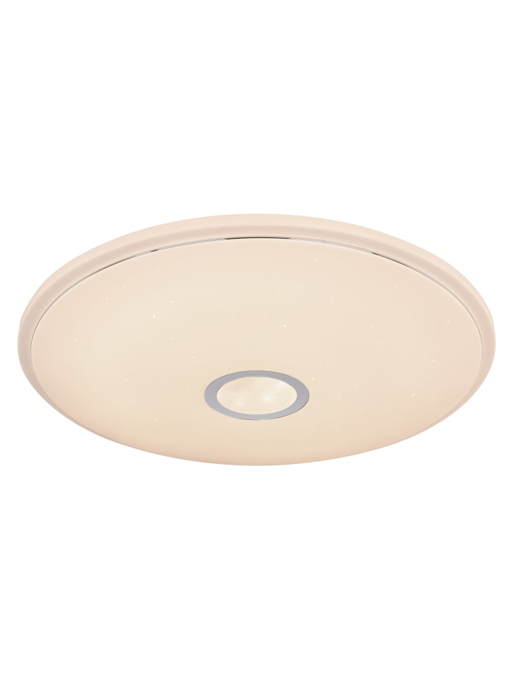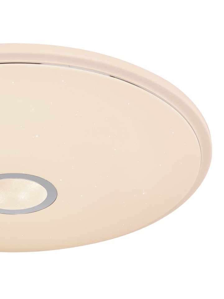 Потолочный светильник, белый металл, опаловый блестящий акрил, хромированное кольцо, регулировка яркости, смена цветов, блокировка цветов, SmartLight, приложение, пульт дистанционного управления, батарейки в комплекте (2 шт. AAA), совместим с Smart Home и Alexa, диаметр: 500 мм, высота: 65 мм, в комплекте светодиод 30 Вт 230 В, источник света 300-3400 лм, световой поток 240-2400 лм, цветовая температура 3000-6500 К, в комплекте светодиод RGB 5 Вт 230 В