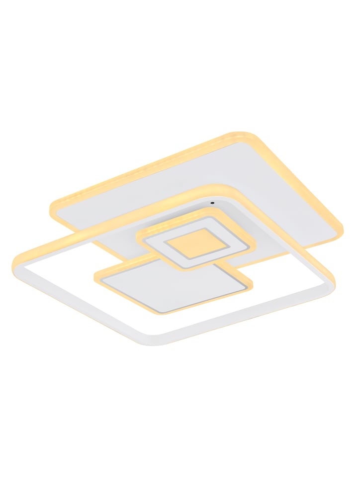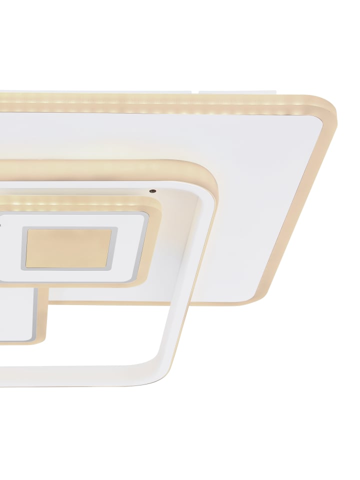 Потолочный светильник, металл, матово-белый; алюминий, матово-белый; опаловый акрил; регулировка яркости, несколько уровней яркости с помощью настенного переключателя; блокировка цвета; SmartLight; функция памяти; ночник; пульт дистанционного управления; в комплекте 2 батарейки типа ААА; совместим с Smart Home и Alexa; размеры (Д x Ш x В): 503 x 503 x 60 мм; в комплекте светодиод 50 Вт 230 В, источник света 400-6600 лм, световой поток 300-3700 лм, цветовая температура 2700-6000 К