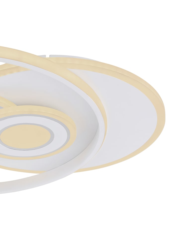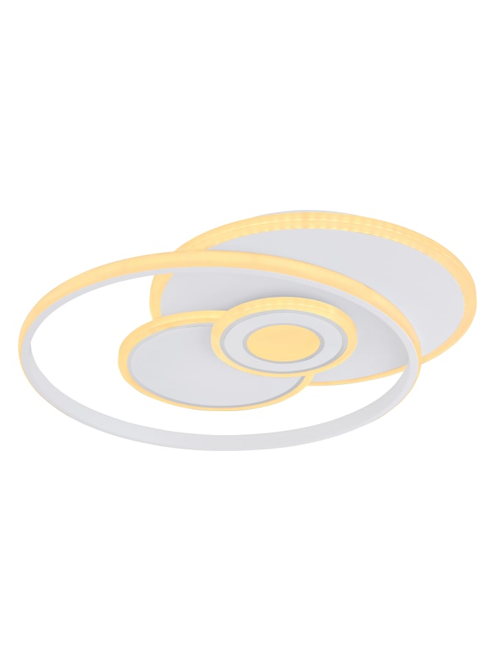 Потолочный светильник, металл, матово-белый; алюминий, матово-белый; опаловый акрил; регулировка яркости, несколько уровней яркости с помощью настенного переключателя; блокировка цвета; SmartLight; функция памяти; ночник; пульт дистанционного управления; в комплекте 2 батарейки типа ААА; совместим с Smart Home и Alexa; размеры (Д x Ш x В): 545 x 460 x 60 мм; в комплекте светодиод мощностью 50 Вт 230 В, источник света 400-6600 лм, световой поток 300-3700 лм, цветовая температура 2700-6000 К