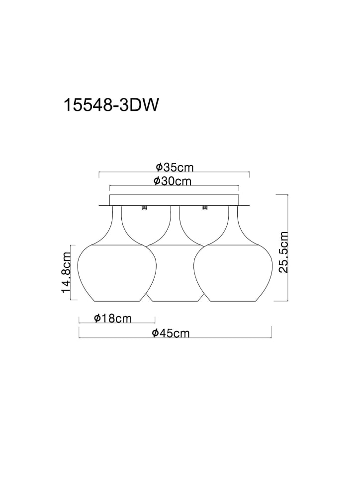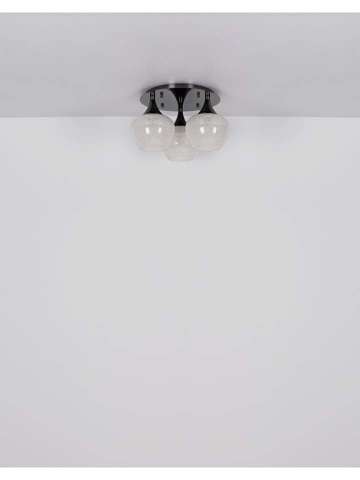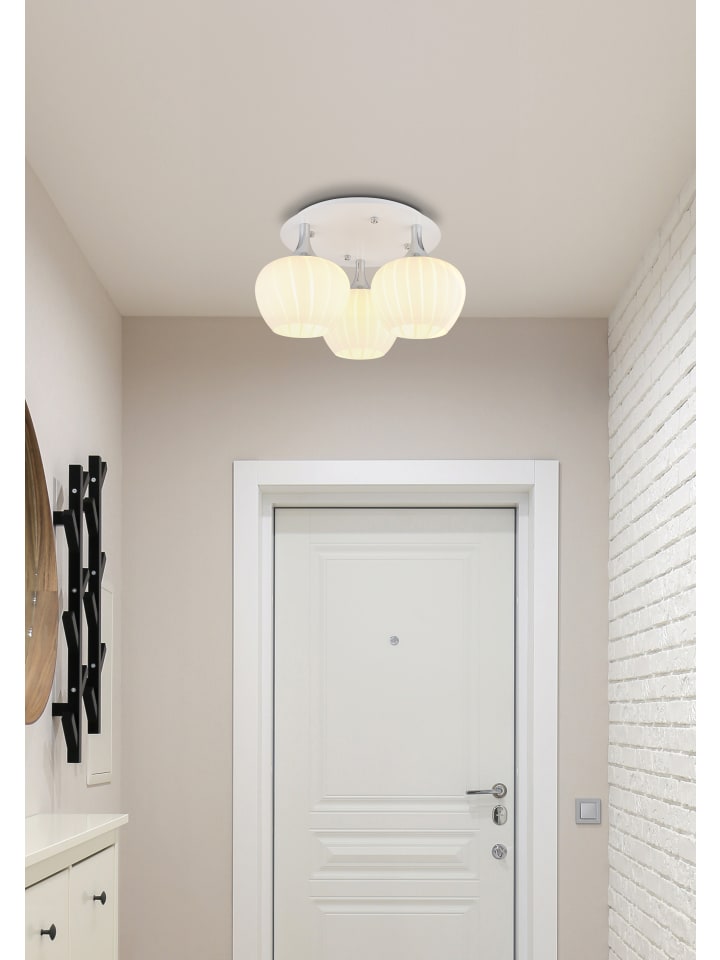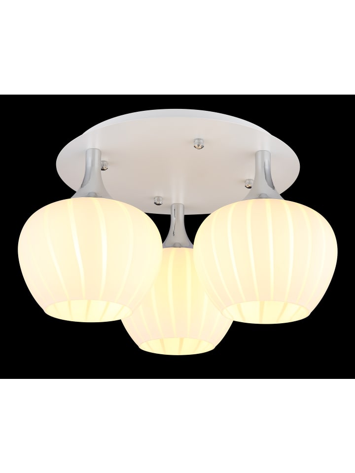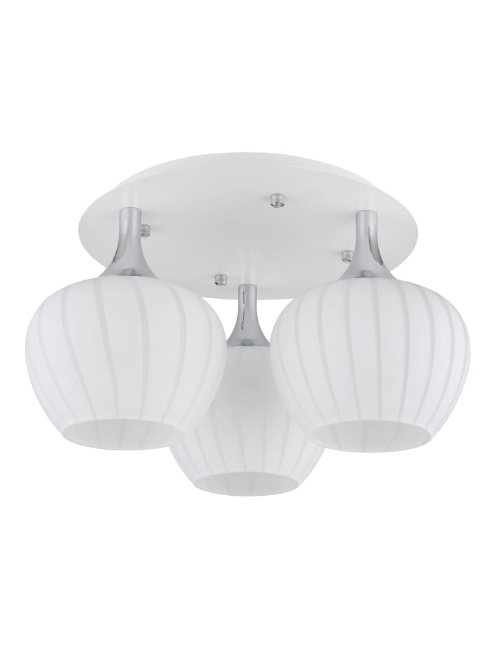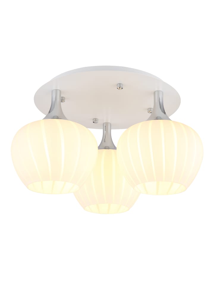 Потолочный светильник, матовый белый металл, хромированный металл, опаловое сатинированное стекло, стекло с декоративными канавками, ø: 450 мм, H: 255 мм, без 3 ламп E27 40 Вт 230 В